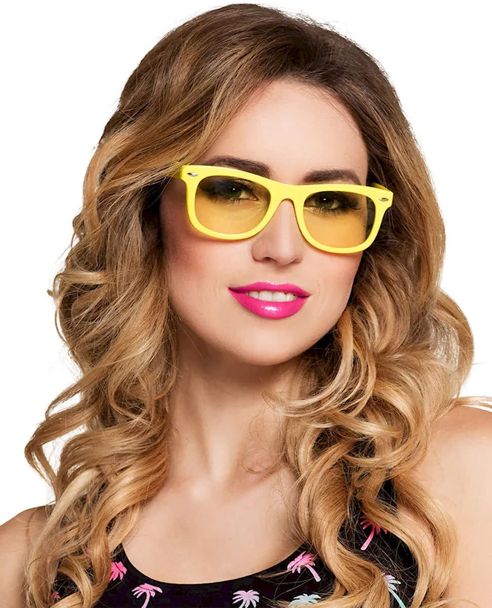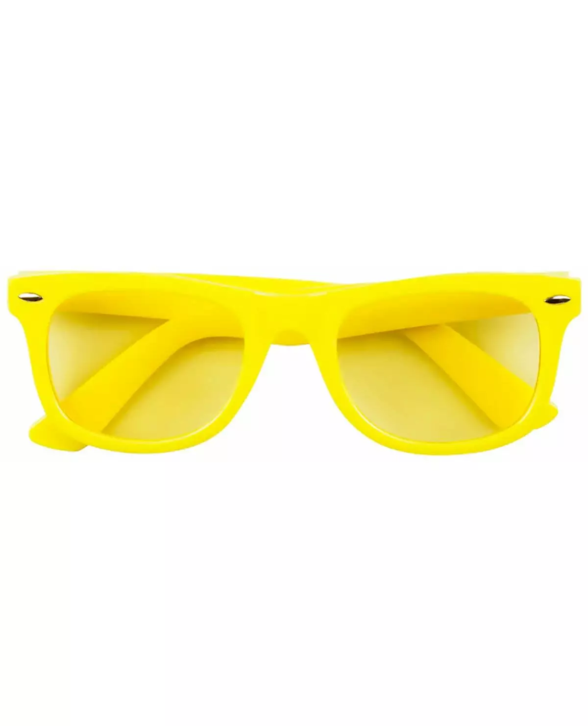Retro og fluorescerende! Disse plastbrillene for voksne er gule. Plastlinsene er litt tonet i en litt mørkere gulfarge. Den ikoniske 50-tallsformen gjør disse brillene til et viktig tilbehør for en fargerik fest! Inkludert tilbehør: Briller Materiale: Plast
