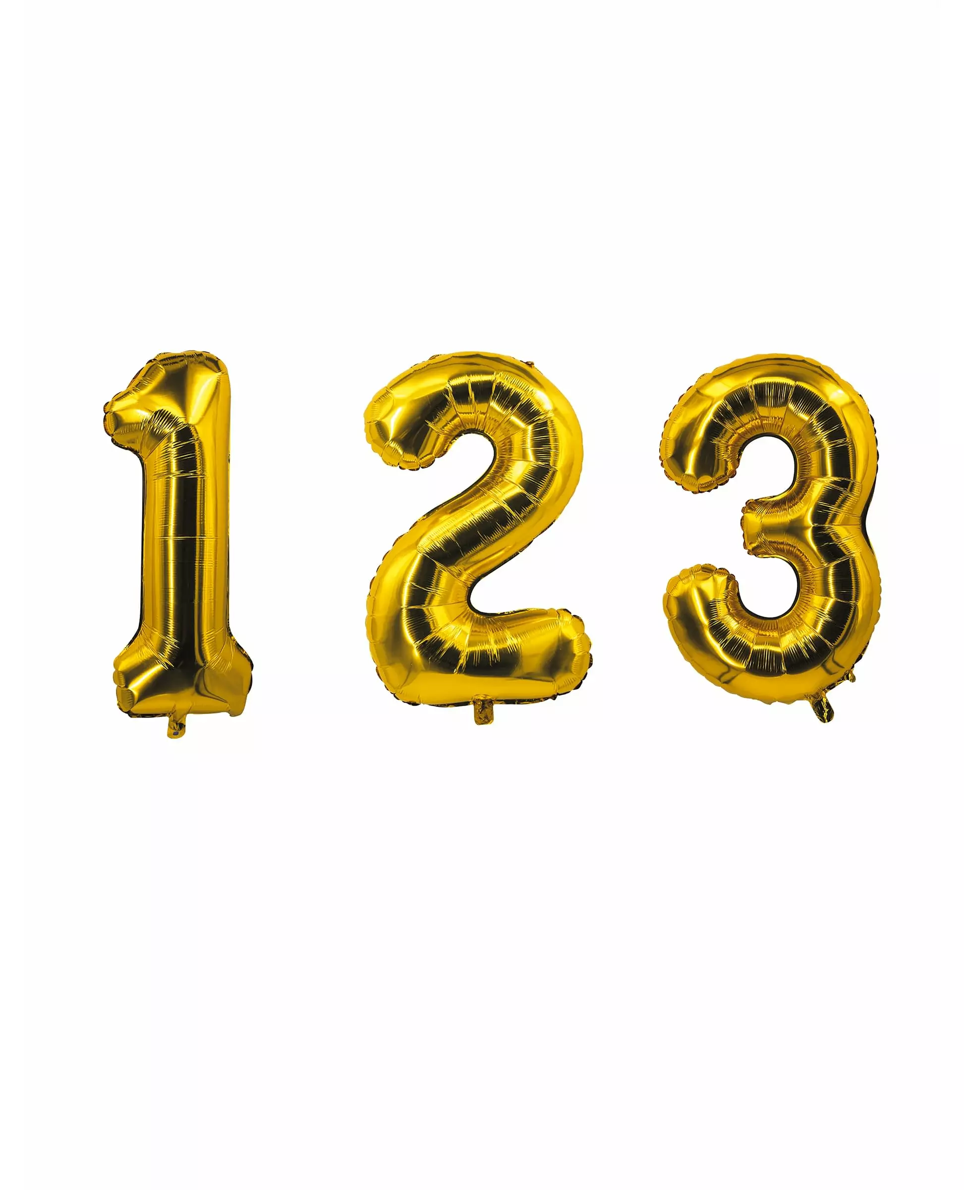 For en elegant og personlig dekorasjon! Denne tallballongen er laget av gullfarget aluminium og måler omtrent 85 cm høy. Velg ønsket tall fra rullegardinmenyen. Den kan blåses opp med luft ved hjelp av et sugerør eller med helium for å få den til å fly. Fullfør bursdags- eller nyttårsdekorasjonen din med denne tallformede ballongen! Inkludert tilbehør: 1 tallballong Materiale: Nylon
