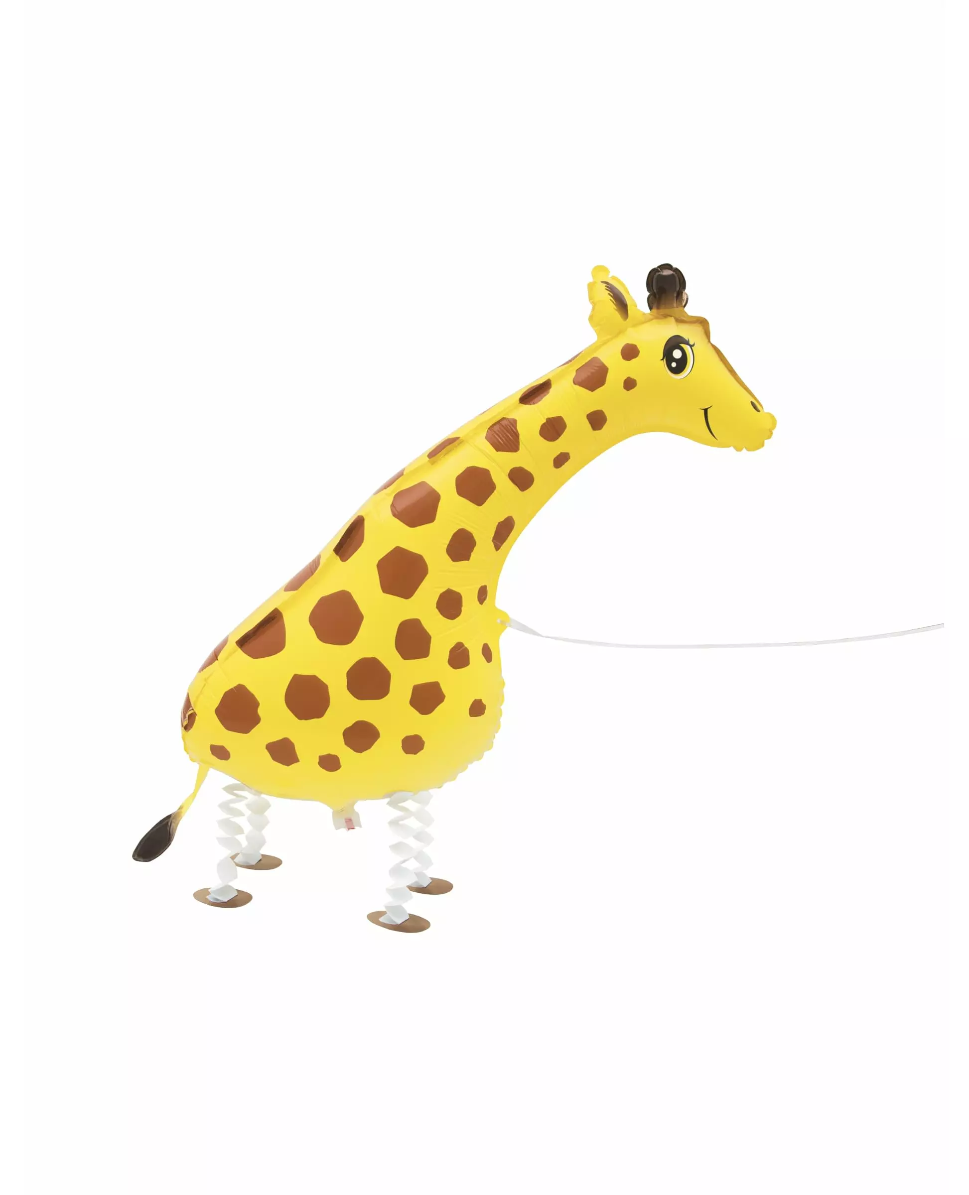 Ta med sjiraffen din på tur! Denne folieballongen måler omtrent 86,3 cm i høyden. Den forestiller en gul sjiraff med brune flekker. Du kan få denne sjiraffen til å sveve i luften ved å blåse den opp med helium eller luft. En snor som følger med lar deg henge den opp. Denne vandrende sjiraffen vil følge deg takket være de fire fjærbelastede beina. Denne ballongen vil være ideell for å underholde barn på en bursdagsfest eller som en original dekorasjon!. Inkludert tilbehør: Ballongsnor Materiale: Aluminium