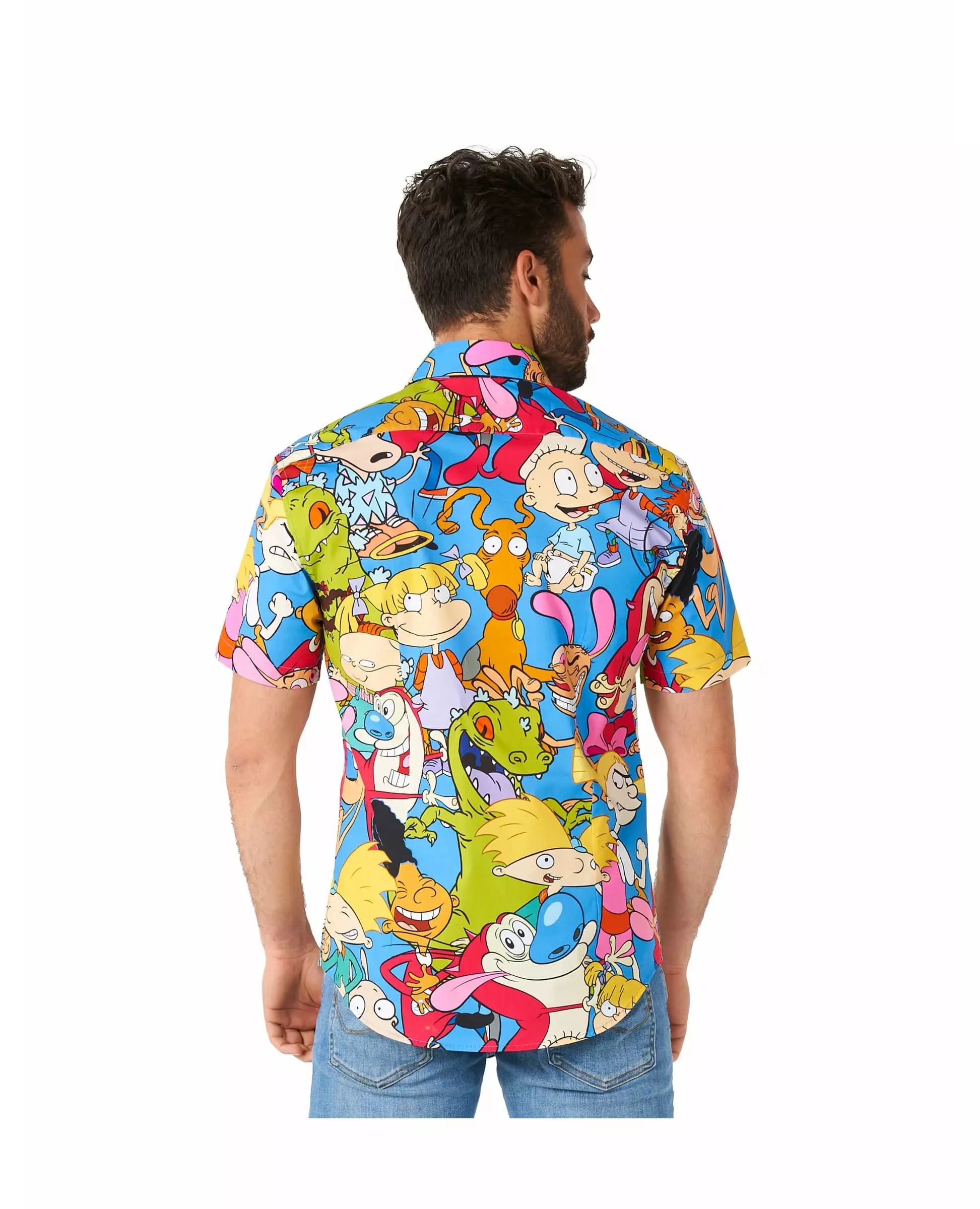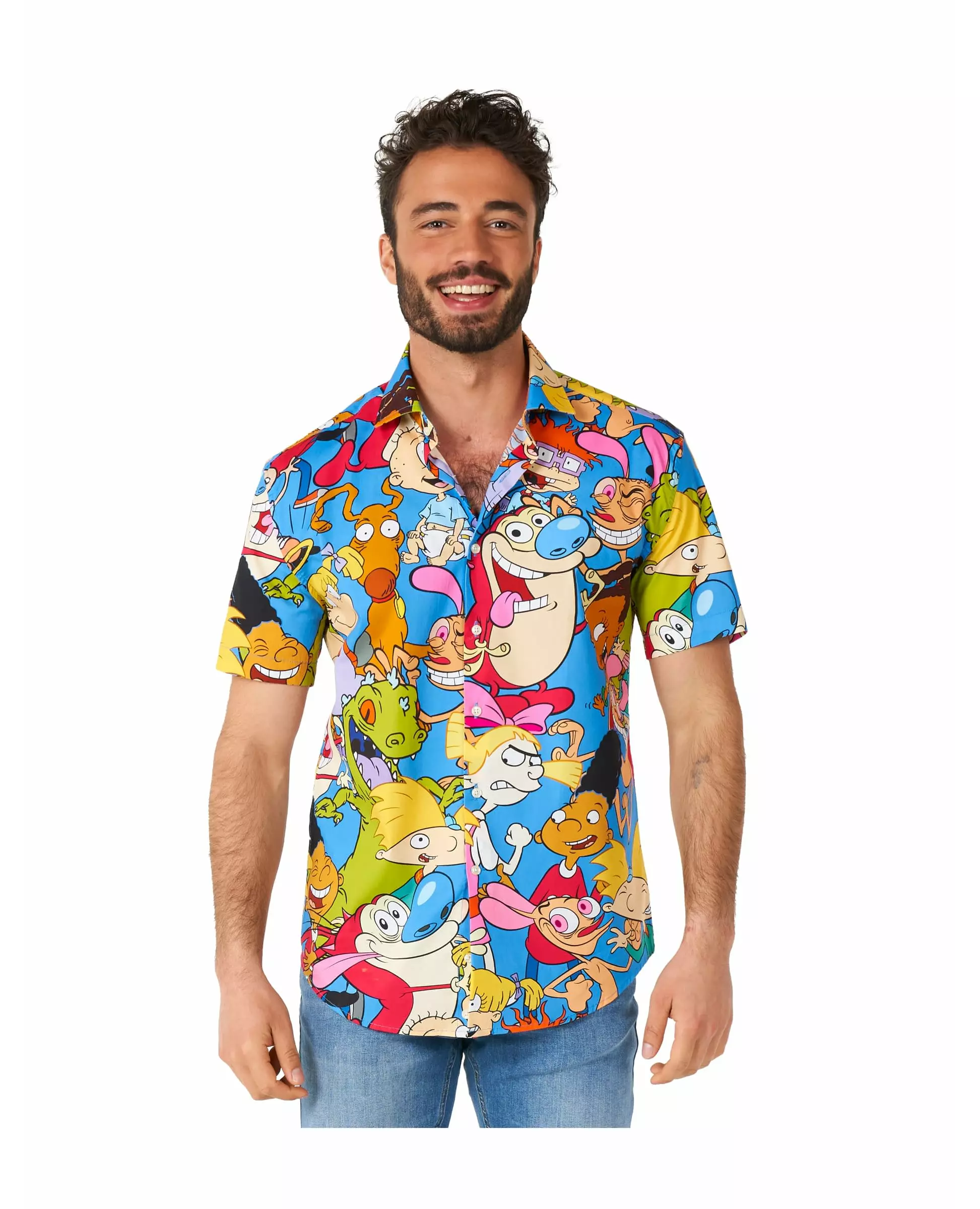 Gjenoppdag barndommens tegnefilmer! Denne 90-talls tegneserie-skjorten er for voksne. Offisielt lisensiert av Opposuits™, den har korte ermer og er trykt med kjente Nickelodeon™-tegnefilmer som Hey Arnold! eller Rugrats. Den lukkes med hvite knapper foran. Gå tilbake til barndommen din med denne skjorten med dine favoritttegnefilmer fra 90-tallet! Materiale: 100 % polyester. Inkludert tilbehør: Skjorte