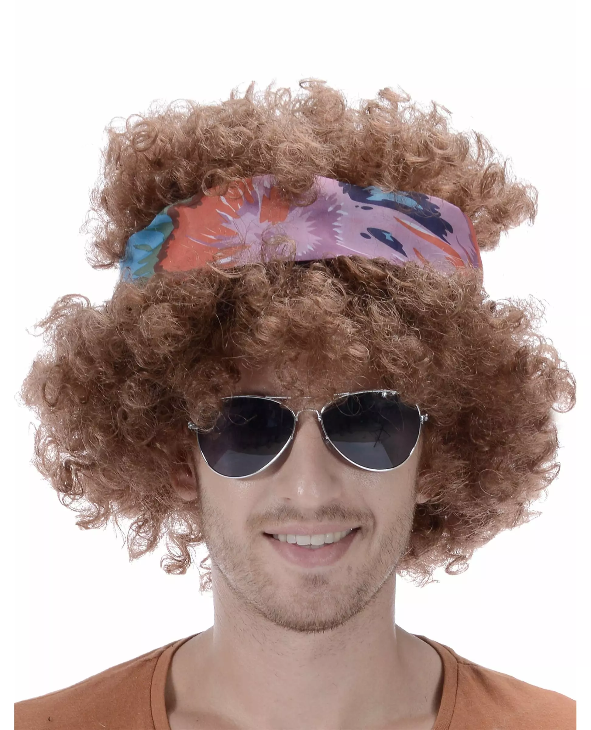 Få et afrohippie-utseende med denne parykken! Denne afrohippie-parykken er for menn. Den er laget av brunt syntetisk hår. Sistnevnte er krøllete og gir volum til hele utseendet. Klippet er afro, og et blomstrete skjerf i tilfeldige farger setter prikken over i-en. Dette tilbehøret vil være perfekt for å forbedre hippie-kostymene dine under utkledningsfester med venner. Inkludert tilbehør: Parykk Materiale: Syntetisk