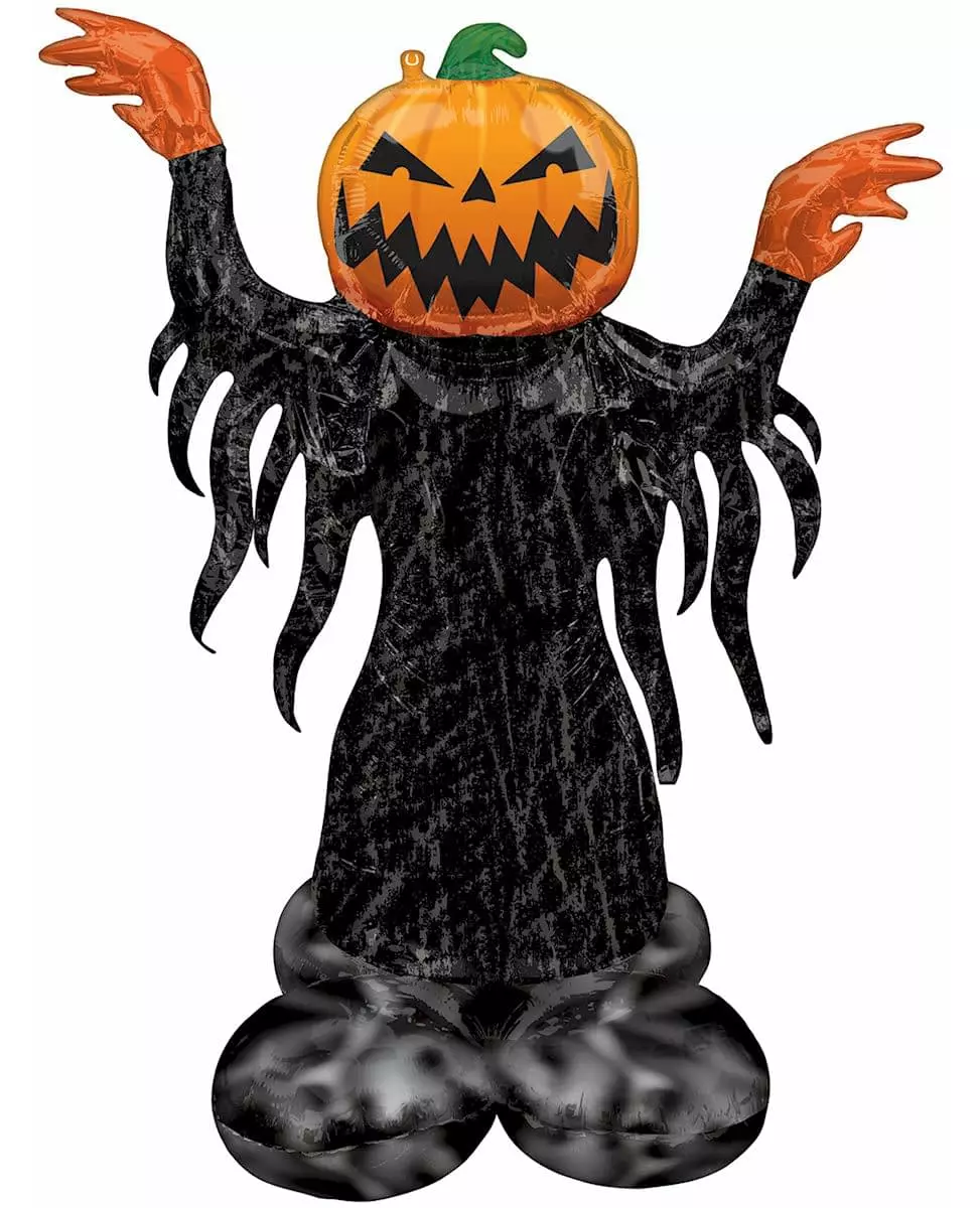 Et gresskar med gigantiske dimensjoner! Denne gigantiske Airlooz-gresskarfolieballongen måler omtrent 134 cm i faktisk størrelse. Den forestiller et gigantisk gresskar i en svart kjole med lange armer og oransje hender, og kan balanseres på flatt underlag takket være den oppblåsbare basen. Den kan enkelt blåses opp med luft eller helium ved hjelp av et sugerør. Fullfør utendørs- eller innendørsdekorasjonen din med dette gigantiske gresskaret til Halloween-festen din! Inkludert tilbehør: 1 folieballong Materiale: Aluminium Vedlikehold: Ikke vask