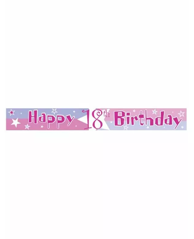 aldersgrupper tilgjengelig! Dette «Gratulerer med dagen»-banneret er rosa og 3,7 meter langt. Det er vanntett og kan klippes i flere deler. Ulike aldersgrupper er tilgjengelige: 18 år, 30 år, 40 år, 50 år og 60 år. Dette banneret er ideelt for alle bursdagsfester og vil dekorere rommet ditt på en festlig måte.