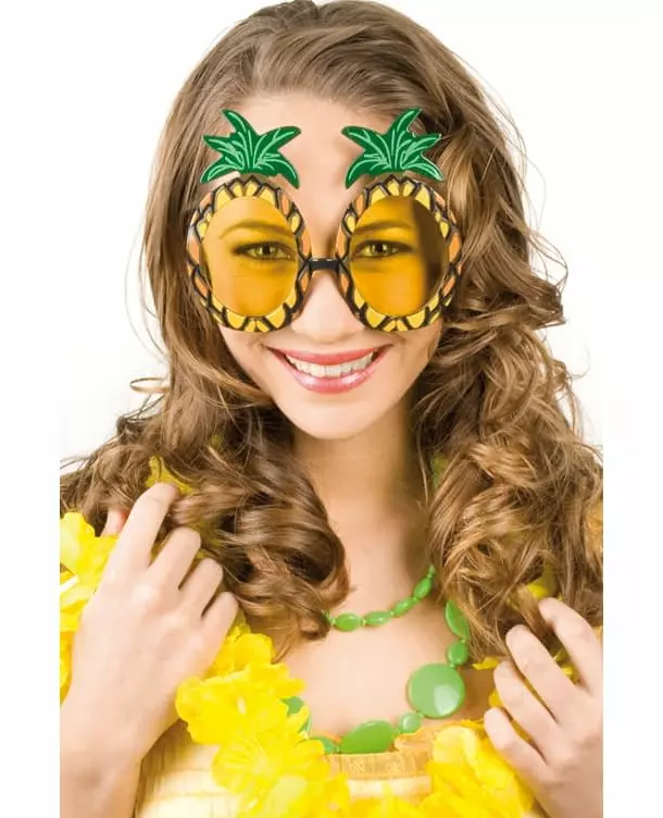 Eksotisk! Disse brillene for voksne med gule linser er ananasformet. En ideell brillemodell for å fullføre et karnevalskostyme eller kostymefester. Inkludert tilbehør: Briller