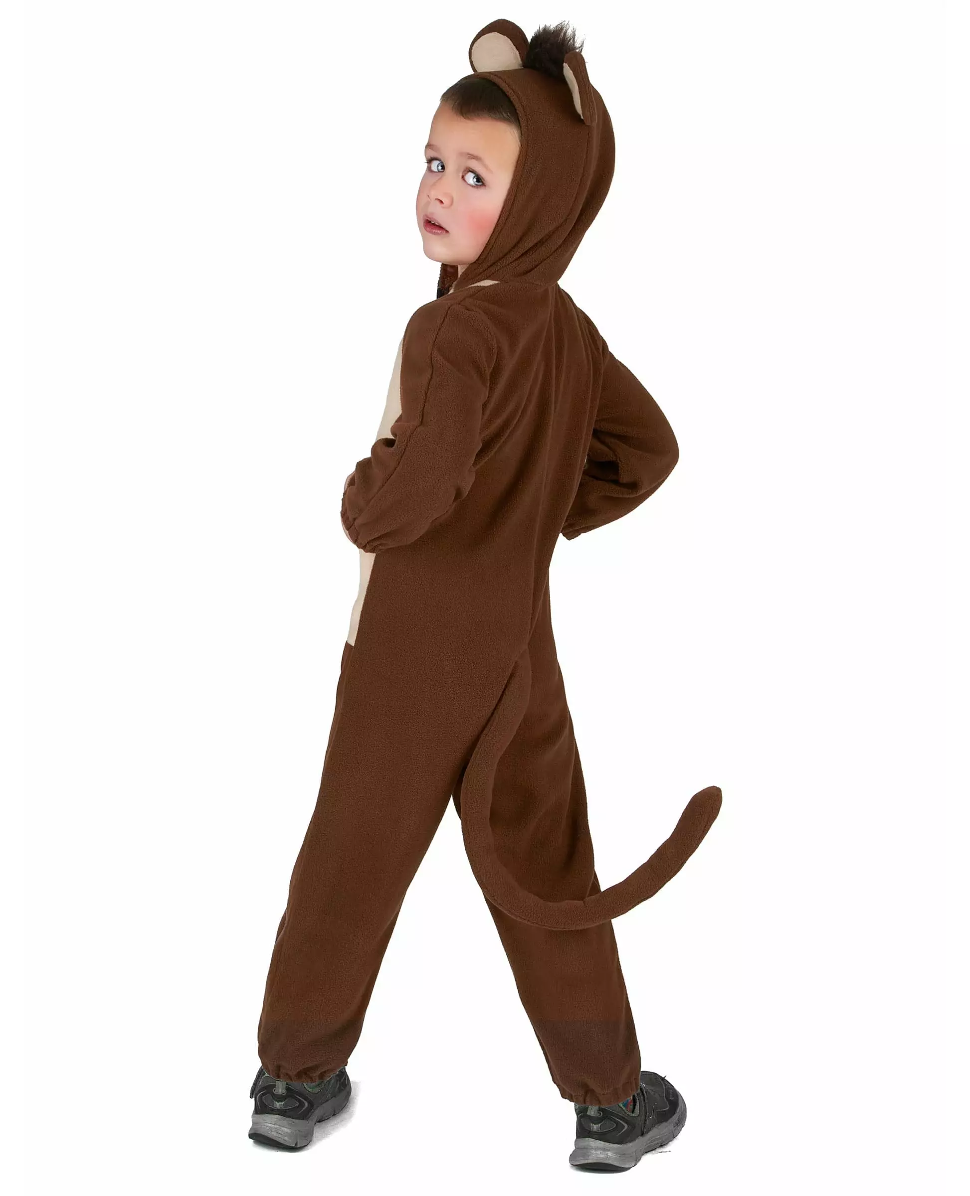 Apekatter er tillatt! Dette apekostymet for barn består av en jumpsuit med glidelås foran. Stoffet er mykt og føles som fleece. (Kun jumpsuiten er inkludert) En hette med runde ører og en dott svart syntetisk pels fullfører dette søte antrekket. Elastiske håndledd og ankler lar deg skape en puffy effekt. Den ekstra detaljen er den lange halen med en metallramme som du kan forme slik du ønsker for å fullføre smårollingens antrekk. Dette spøkefugl-apekostymet vil være ideelt for barnets første karneval eller til et show! Inkludert tilbehør: Jumpsuit Materiale: 100 % polyester Stell: Håndvaskbar