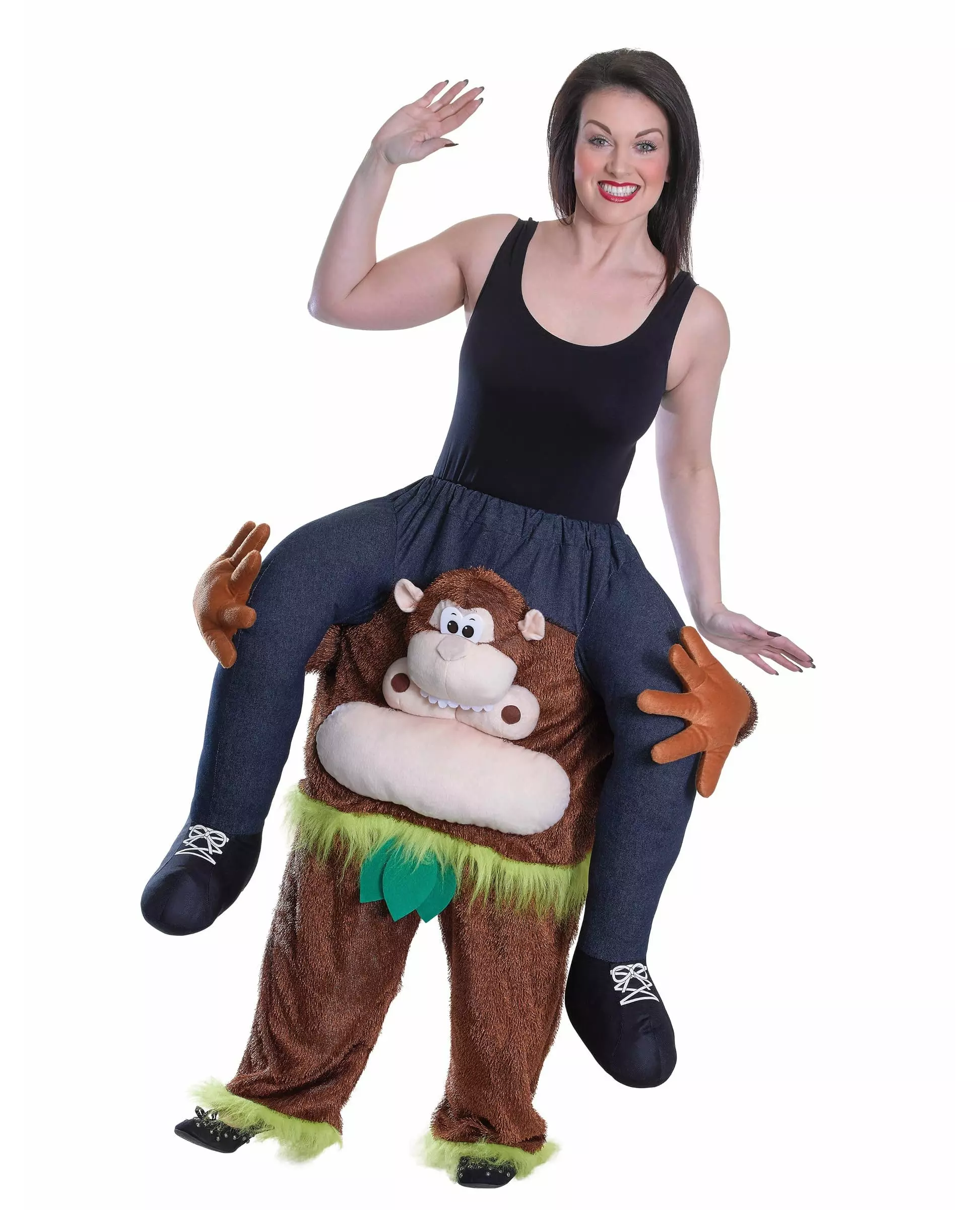 Til karnevalet, velg et Carry Me-kostyme. Dette mann-på-en-ape-kostymet består av «Carry Me»-bukser (hatt og t-skjorte er ikke inkludert). Buksene forestiller en ape, i et brunt stoff. Apens mage og hode er beige og er polstret for å gi kostymet mer realisme. Bena er på toppen av kostymet. Denim-effekt, svarte sko er også representert nederst på bena. Når det er brukt, vil dette kostymet gi illusjonen av at du blir båret av en ape. Disse buksene strammes i livet med en snor for å tilpasse seg kroppsfasongen din. Dette kostymet vil være perfekt for å underholde vennene dine under karnevalet. Dette kostymet har åpninger inni som lar deg fjerne eller bytte ut polstringen for et resultat som passer deg. Inkludert tilbehør: Bukser med polstrede ben Materiale: 100 % polyester Pleie: Håndvask