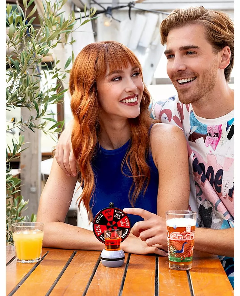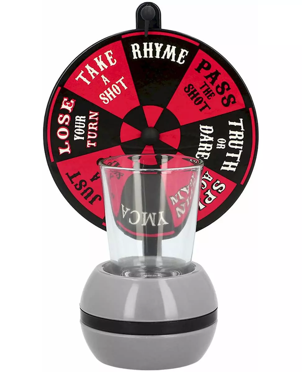Snurr, drikk, gjenta! Med dette aperitiffspillet Wheel of Shot er hver runde en overraskelse! Det inneholder et hjul å snurre og et shotglass å fylle i henhold til instruksjonene. «Ta en shot», «Sannhet eller konsekvens», «Send shot»... Det er opp til hver spiller å ta utfordringen som er angitt av pilen! Perfekt for å live opp en bursdag, en kveld med venner eller et utdrikningslag, dette brukervennlige lille spillet garanterer en festlig og uforutsigbar atmosfære. Inkludert tilbehør: 1 shotglass 1 hjul