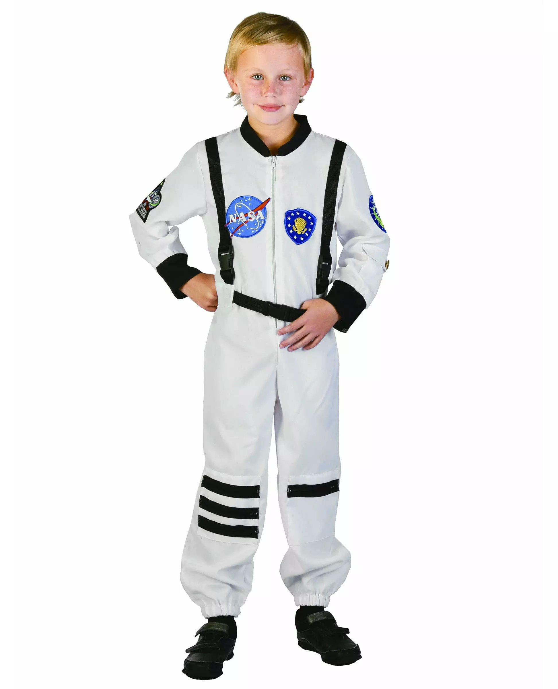 For en interstellar reise! Dette astronautkostymet for barn består av en hvit, langermet jumpsuit dekorert med NASA-merker på brystet og ermene. Svarte falske stropper og et belte pryder toppen av antrekket, og det har et stort antall lommer. Jumpsuiten har glidelås foran, som gjør at barnet ditt enkelt kan ta den på. Med dette astronautkostymet vil barnet ditt ha hodet i stjernene på karnevalsdagen. Inkludert tilbehør: 1 Jumpsuit Materiale: Polyester Stell: Håndvask