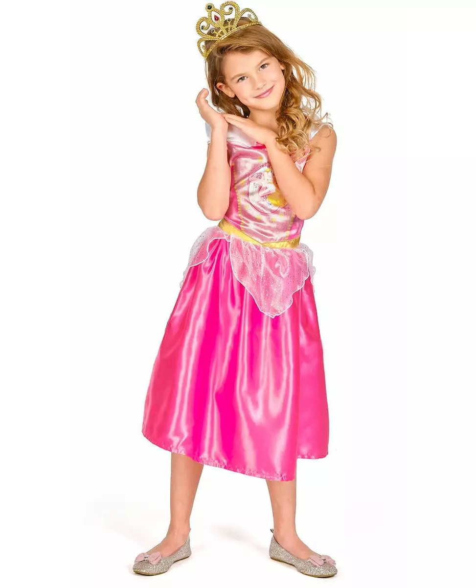 Vekk prinsessen i deg. Dette Aurora®-kostymet er offisielt lisensiert av Disney® Tornerose® og inkluderer en kjole som selges separat. Kjolen er laget av et satengrosa stoff som er lysere på toppen enn på bunnen. En pen hvit båthals dekorerer kjolen for enda mer likhet med prinsesse Aurora. Et portrett av Tornerose er trykt på brystet. I livet gir pene gjennomsiktige slør enda mer sjarm. Et perfekt Disney-prinsessekostyme til en utkledningsbursdag, karneval eller andre utkledningsfester. Inkludert tilbehør: Kjole. Materiale: 100 % polyester. Stell: Håndvask.