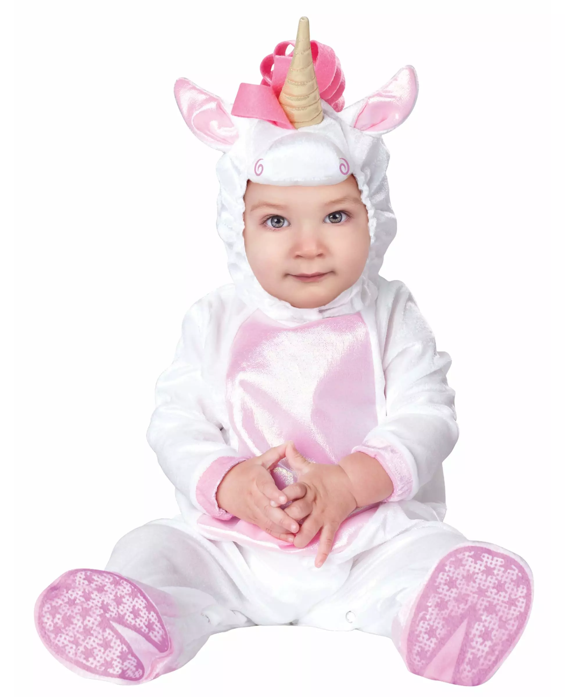 en magisk verden er her en pen baby-enhjørning! Dette enhjørningskostymet for babyer består av en jumpsuit og en hette. Jumpsuiten er laget av hvitt og ganske mykt stoff, magen er lys rosa, samme farge som innsiden av ørene. Denne jumpsuiten lukkes bak med borrelås, men også i skrittet med trykknapper for å enkelt skifte babyen din. Hetten som representerer enhjørningens hode er også inkludert. Den lukkes i halsen med borrelås. Sålene er rosa og formet som hover. Dette kostymet vil være ideelt for å gjøre babyen din til den vakreste enhjørningen til karneval eller andre utkledningsarrangementer. Inkludert tilbehør: Jumpsuit med hette Materiale: Jumpsuit 100 % polyester - Hette 100 % polyester - Hetteskum 100 % polyuretan Pleie: Håndvask
