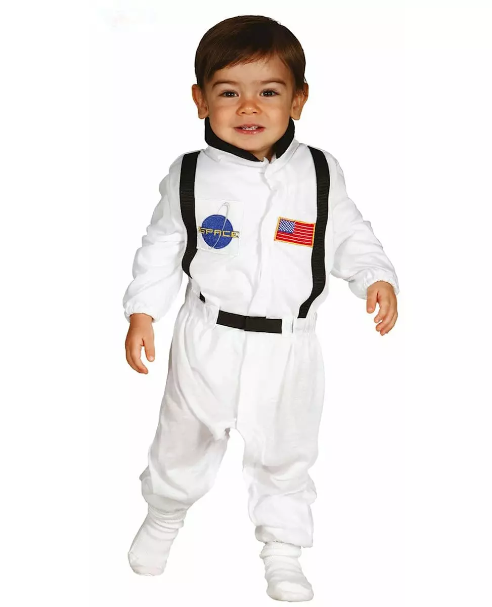 Klar for avgang? Dette astronautkostymet er for babyer. Det består av en jumpsuit. Denne hvite jumpsuiten har lange ermer. Et romtrykk og det amerikanske flagget er avbildet på brystet. I tillegg til å være komfortabel for barnet ditt å ha på seg, vil den være myk å ta på for deg. Denne jumpsuiten vil være perfekt for å kle opp den lille som en astronaut, slik at de kan være en full del av kostymefesten med deg!. Inkludert tilbehør: Jumpsuit Materiale: 100 % polyester Pleie: Håndvask