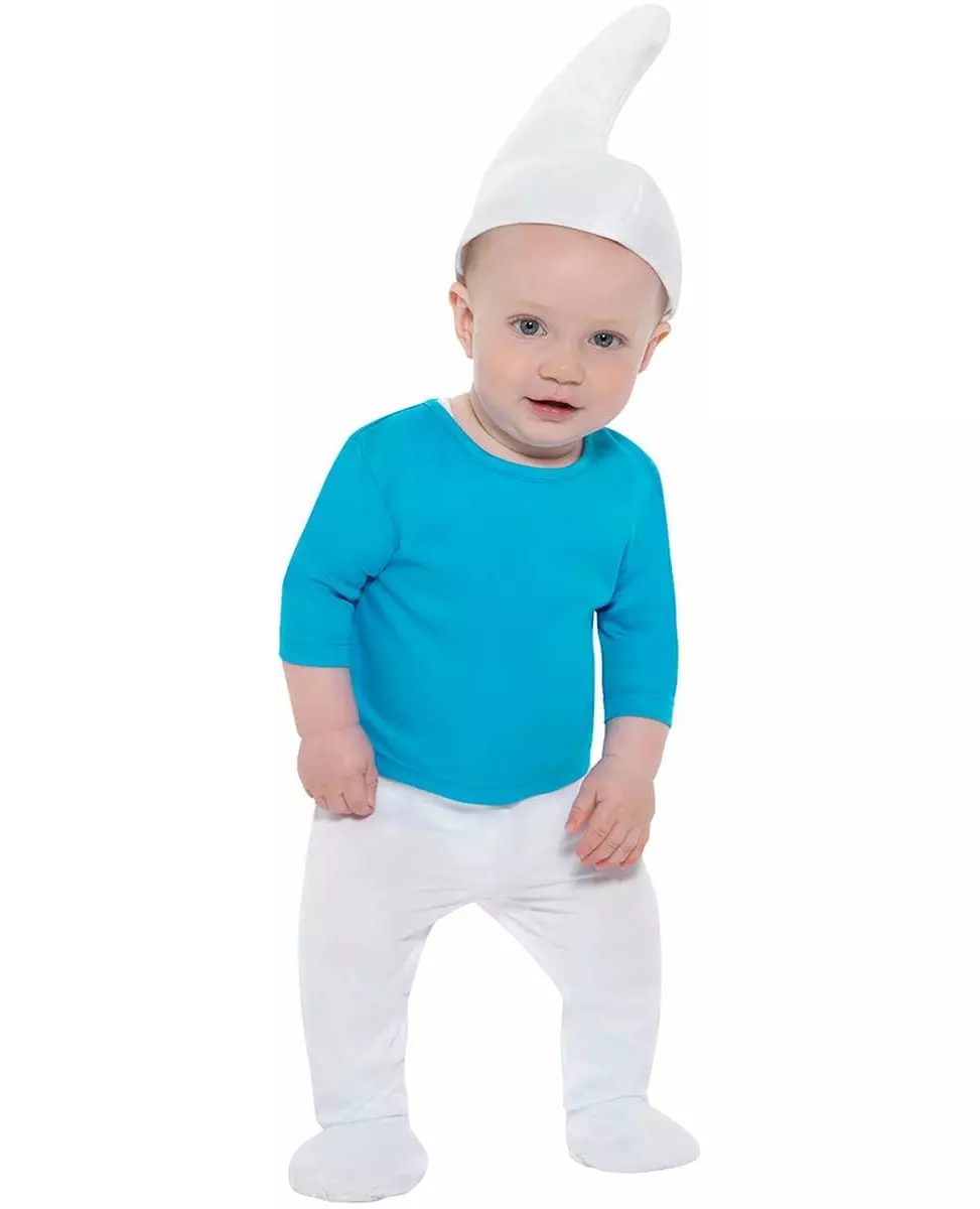Forvandle babyen til en søt Smurf™ Dette Smurf™-babykostymet er perfekt for å forvandle den lille til en av de søte blå figurene. Det inkluderer en blå topp, hvite bukser med støveltrekk og en liten hale, og en ikonisk hvit hatt. Et komfortabelt og søtt Smurf-kostyme vil være perfekt til fester, karneval eller Halloween. Inkludert tilbehør: 1 topp 1 bukse med støveltrekk og hale 1 hatt Materiale: 100 % polyester Vedlikehold: Håndvask