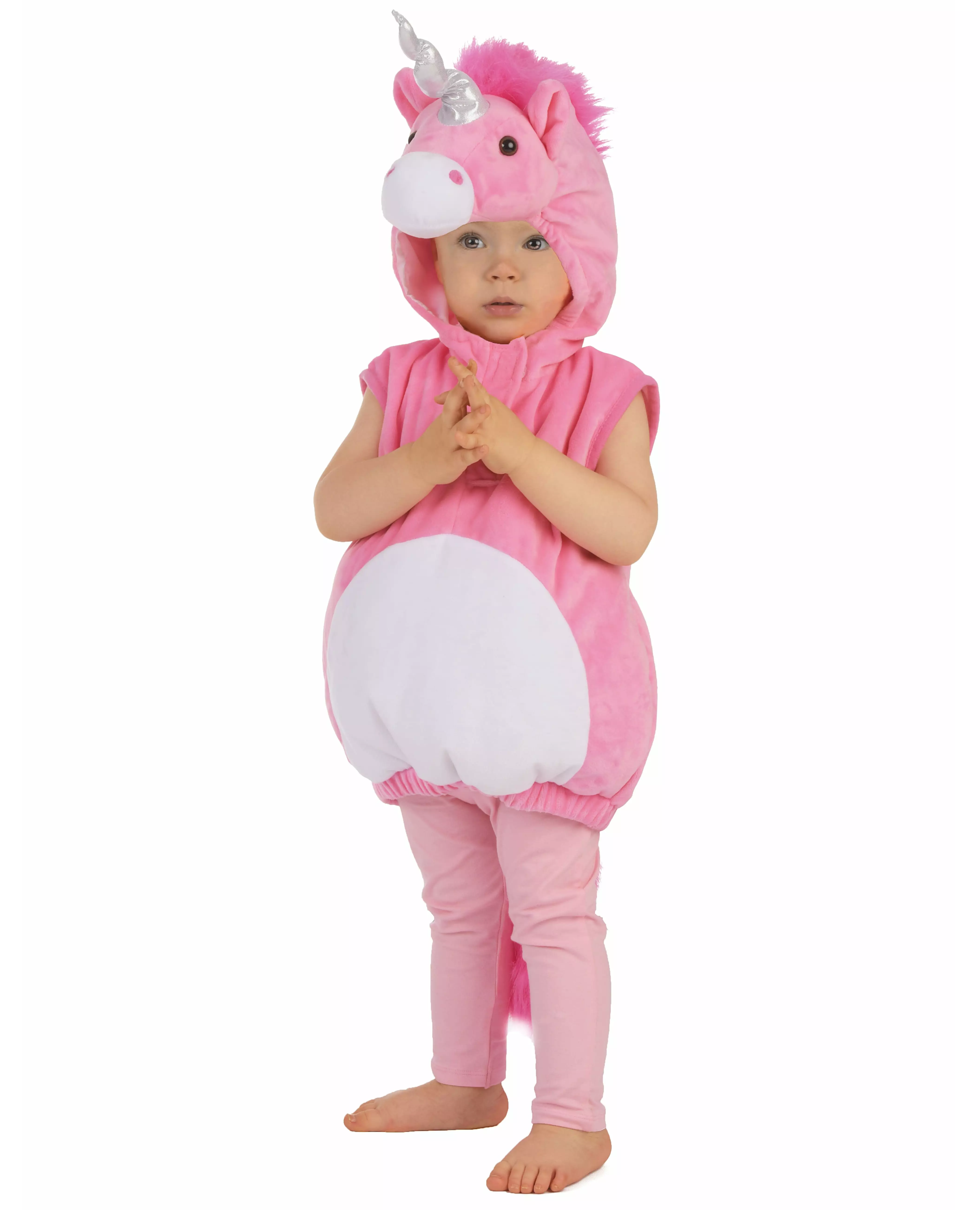 For søte drømmer Dette enhjørningskostymet for barn består av en stor genser i fleecelignende stoff og polstret med vatt på magen. Hetten er dekorert med et flott rosa enhjørningshode med et vridd sølvhorn. Man og hale er laget av lett syntetisk hår for en luftig effekt. Dette kostymet vil være perfekt for å få barnet ditt til å drømme i anledning deres første karneval eller som en bursdagsgave. Inkludert tilbehør: Jumpsuit Materiale: 100 % polyester Stell: Håndvaskbar Målinformasjon: For en størrelse 3/4 år (XS), topplengde ca. 52 cm