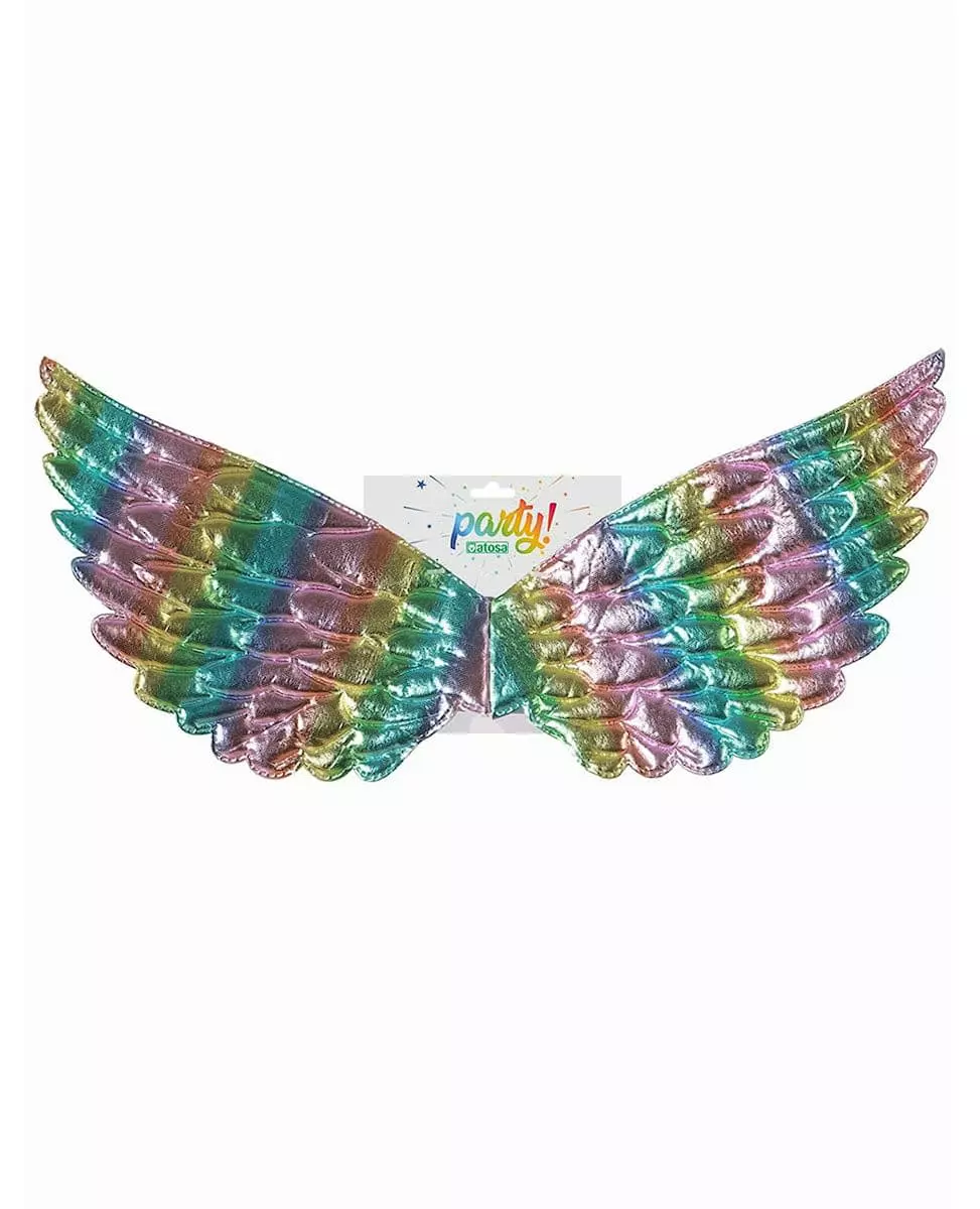 En regnbue av magi! Disse flerfargede englevingene for barn er det perfekte tilbehøret for å gi et magisk preg til ethvert antrekk. Med sine livlige farger og metalliske effekt gir disse vingene et lysende og fantastisk utseende. De er enkle å ta på takket være de praktiske festene, og de holder seg på plass for å ledsage alle imaginære eventyr. Ideelle for å fullføre et engel- eller fe-kostyme eller for å lyse opp en kostymefest, disse vingene vil få de små til å skinne i en verden full av drømmer og magi! Inkludert tilbehør: 1 par vinger
