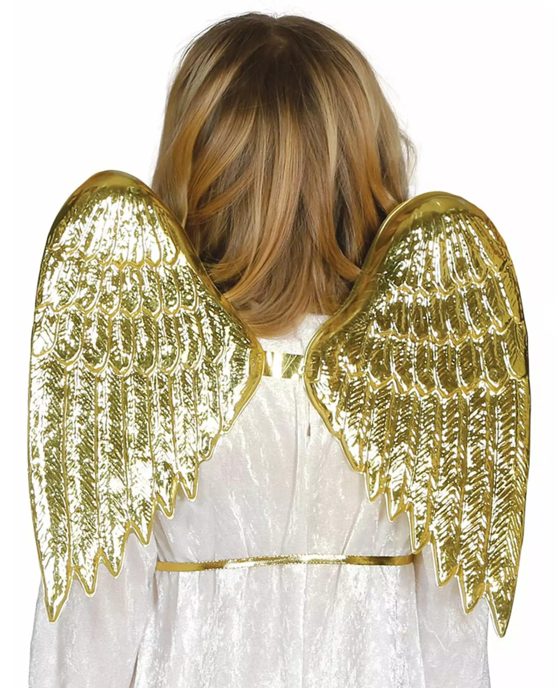 Fly avgårde som en juleengel. Dette paret med barnevinger er gullfarget. De vil pryde hele øvre del av ryggen og bæres med knytebånd. Disse gylne englevingene vil være perfekte for å fullføre englekostymet ditt til juleferien eller rett og slett til slutten av året. Inkludert tilbehør: Vinger. Materiale: 100 % polyester.