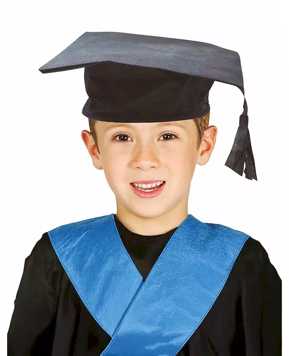 En stolt liten avgangselev! Denne avgangshatten for barn er det perfekte tilbehøret for å feire de store milepælene i skolelivet. Den består av en myk, svart lue, dekorert med en matchende pompong som faller elegant ned til siden. Ideell for en skoleavslutningsseremoni eller en skolefest, gir denne hatten et symbolsk og morsomt preg til arrangementet. Inkludert tilbehør: Lue med pompong