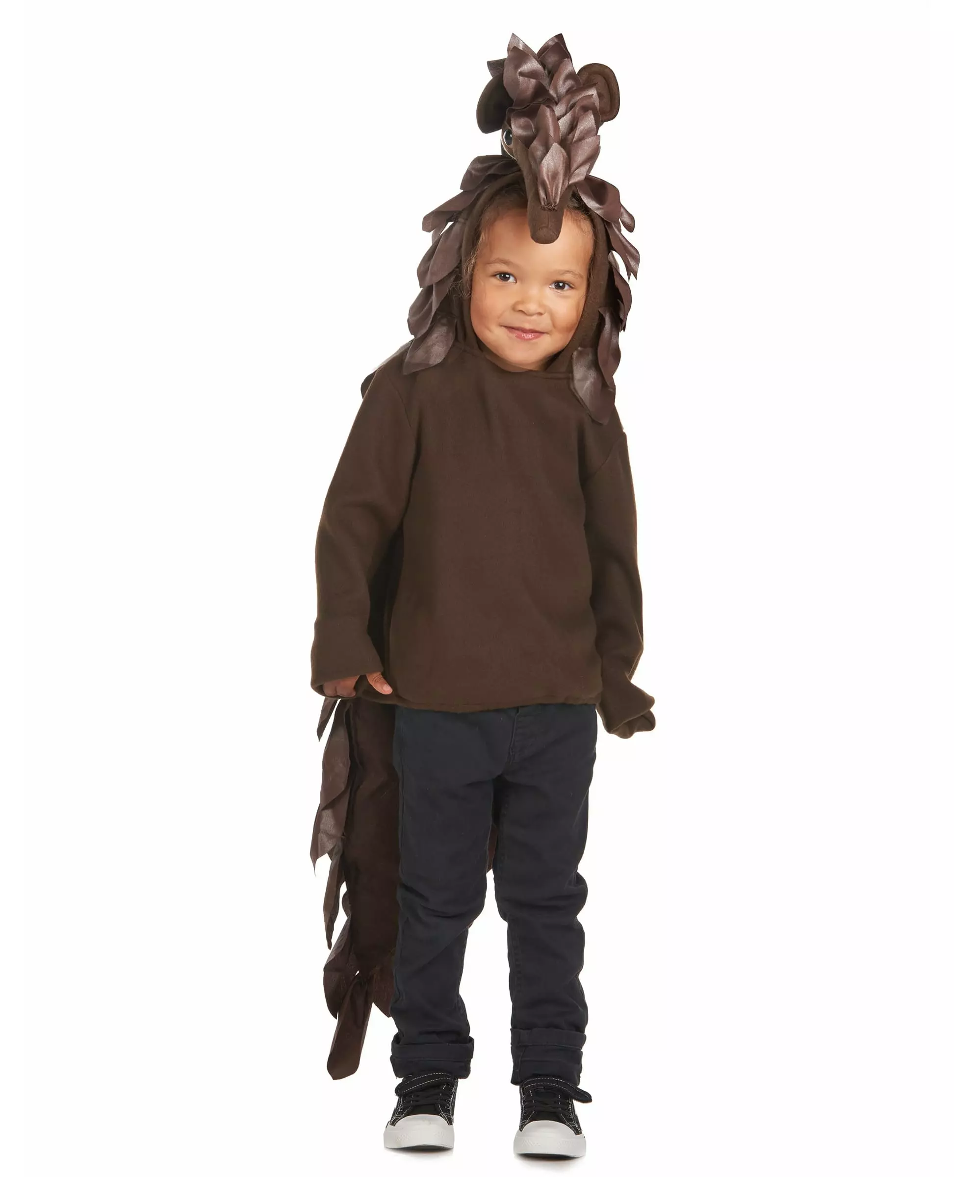 En bedårende pangolin! Dette pangolin-kostymet er for barn og består av en topp (bukser og sko er ikke inkludert). Den brune toppen har lange ermer. Den har brune skjell med et skinnende utseende på baksiden. Den har en hette som representerer pangolinens hode med skjell og lang snute. Barnet ditt vil legemliggjøre den mest bedårende pangolinen med dette pangolin-kostymet til Halloween eller en temafest! Materiale: 100 % polyester. Inkludert tilbehør: Topp