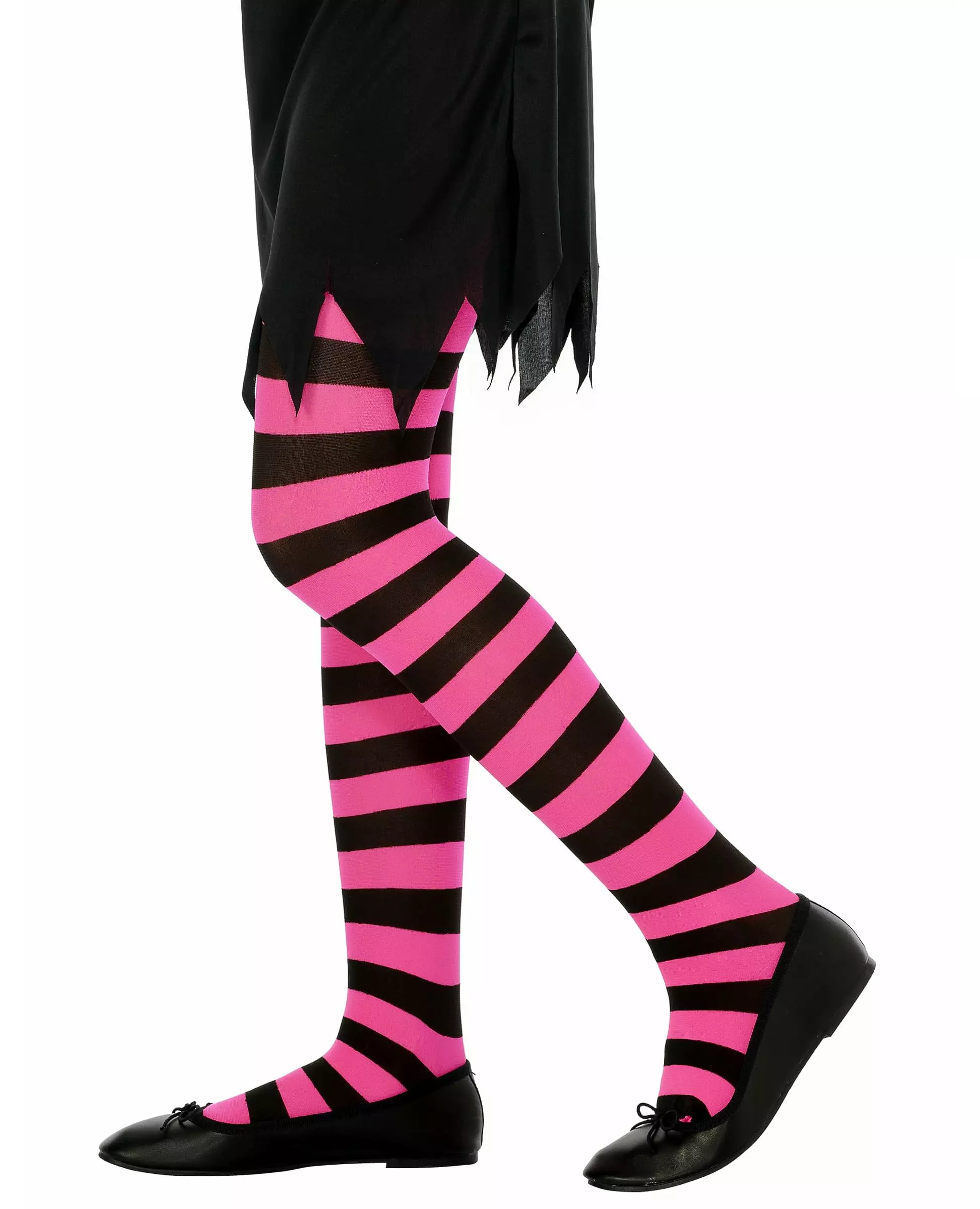 Elastisk materiale! Disse barnestrømpebuksene er stripete i neonrosa og svart. For ekstra komfort er de elastiske. De er 70 denier tykke. Disse stripete strømpebuksene vil være perfekte for å fullføre datterens heksekostyme på Halloween-kvelden. Copyright Widmann SRL. Inkludert tilbehør: Strømpebukser Materiale: 98 % nylon, 2 % elastan Pleie: Håndvask