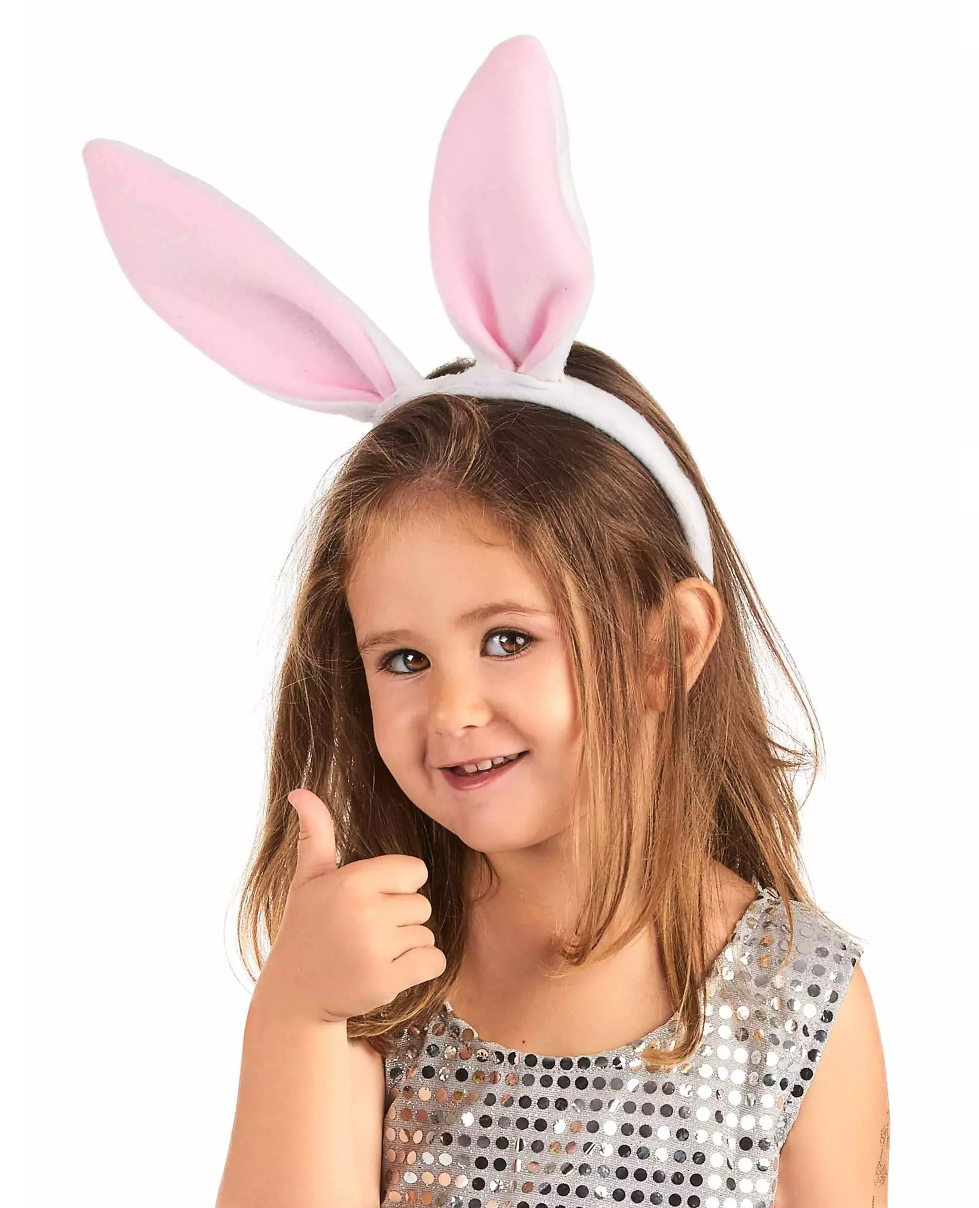 Liten kanin med store ører Dette pannebåndet med kaninører er for barn. Det har to store ører på ca. 18 cm, rosa på innsiden og hvite på utsiden. Disse vil være veldig rette takket være plastfôret. Til et kaninkostyme under karneval eller til et danseshow vil dette søte hodeplagget være perfekt! Inkludert tilbehør: Pannebånd Materiale: 100 % polyester Stell: Håndvaskbar