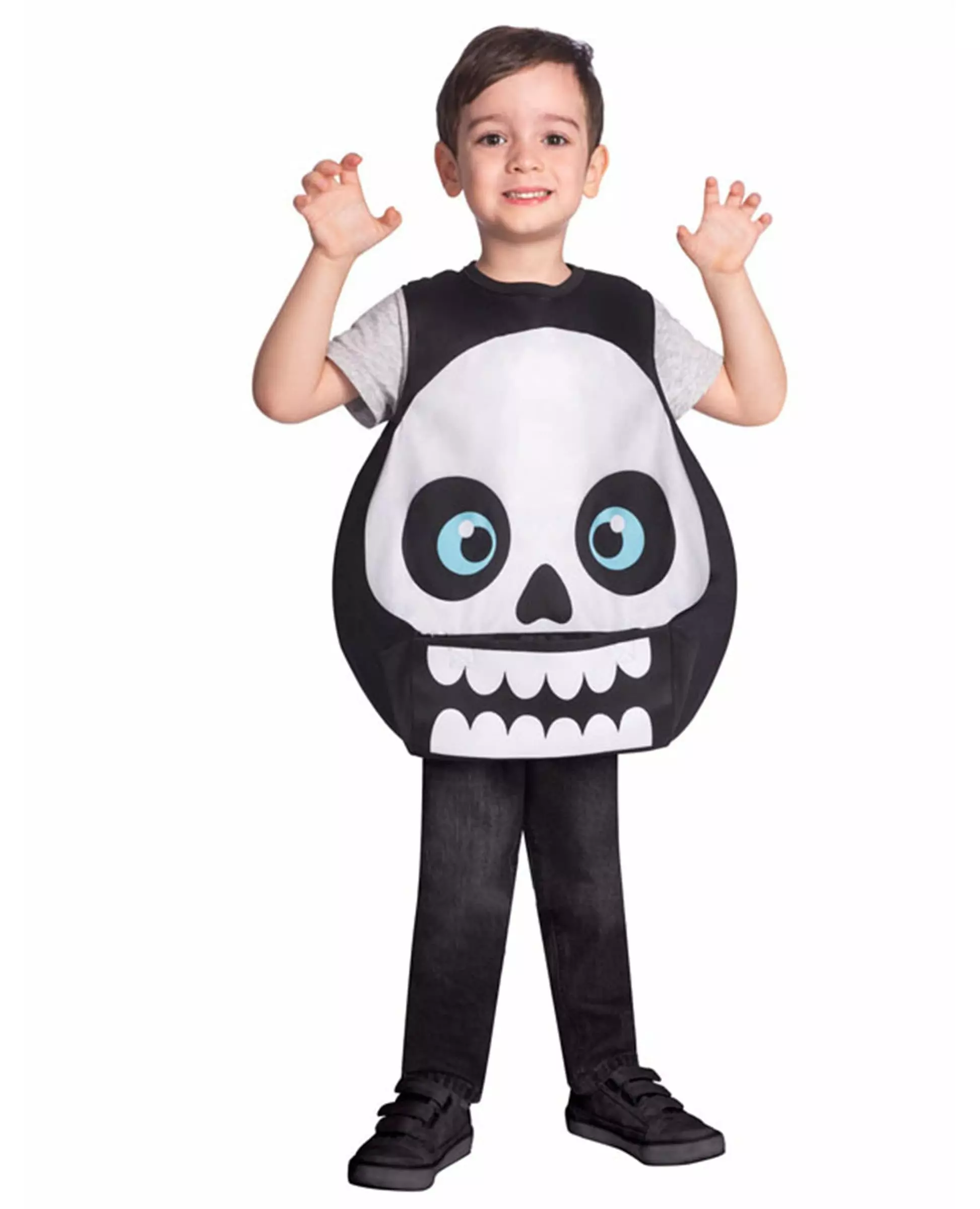 Et søtt skjelettkostyme til knask eller knep! Dette skjelettforklekostymet er for barn og består av et forkle (t-skjorte, bukser og sko er ikke inkludert). Det svarte forkleet har et søtt hvitt skjeletthode med store blå øyne. Nederst på kostymet har det en lomme for å gjemme alle slags ting, som godteri. Barnet ditt vil være et søtt skjelett med dette skjelettforklekostymet under knask eller knep på Halloween-kvelden! Inkludert tilbehør: 1 forkle Materiale: 100 % polyester Vedlikehold: Håndvask