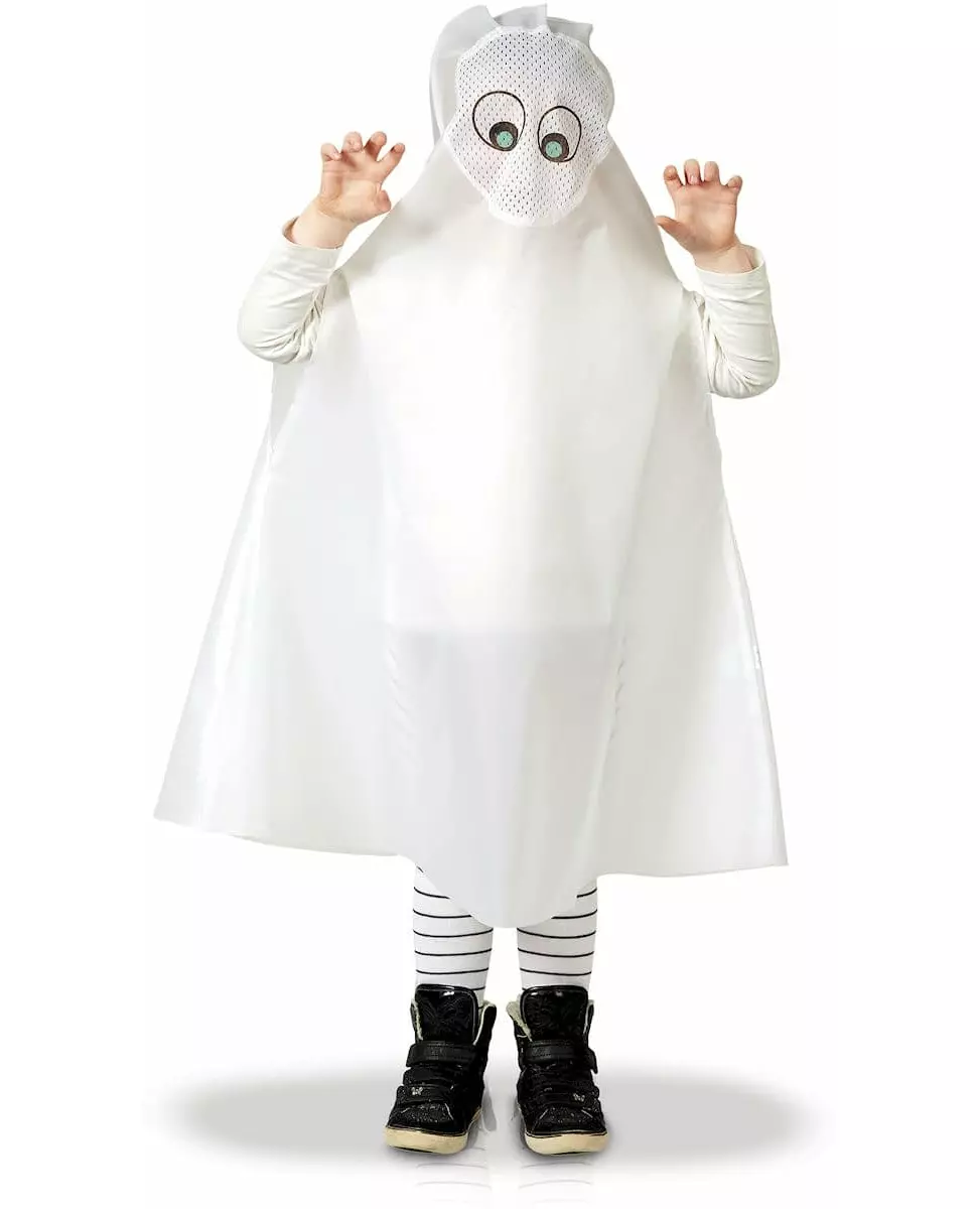 Skjul identiteten din under denne spøkelsesponchoen for barn! Denne spøkelsesponchoen er for barn, den inkluderer en spøkelsesjumpsuit (sko og strømpebukser er ikke inkludert). Dette hvite kostymet, som går nedenfor knærne, har et stoffhull på hodet slik at brukeren av ponchoen kan se gjennom det. Små runde øyne er tegnet på nettet. Barnet ditt trenger bare å ta ponchoen på over hodet og la armene stikke ut av åpningene for å se ut som et ekte lite spøkelse. Dette spøkelseskostymet er en flott klassiker som barnet ditt vil elske å bruke på sin neste Halloween-fest! Inkludert tilbehør: Tunika Materiale: 100 % polyester Vedlikehold: Håndvask