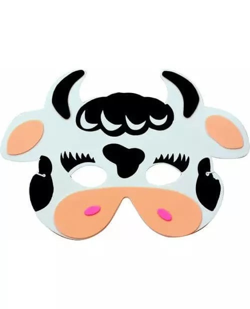 Bli en søt liten ku til karneval. Denne kumasken for barn er laget av EVA (stivt skum). Den forestiller et hvitt og svart kuhode med små horn. Snuten og innsiden av ørene er beige. Det er åpninger i øyehøyde. Denne masken sitter enkelt på ansiktet takket være en strikk. Dette tilbehøret vil være perfekt for å fullføre et kukostyme til karneval eller en gårdsdyrfest. Inkludert tilbehør: Maskemateriale: EVA