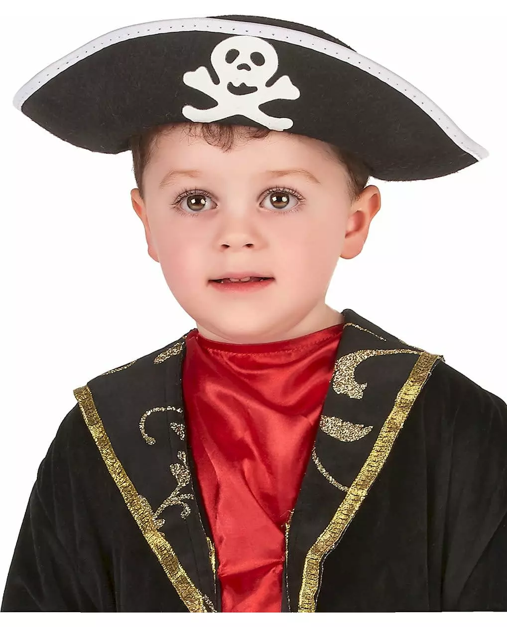Med hodeskalle! Denne svarte piratluen for barn er dekorert med en hvit hodeskalle foran. Denne piratluen vil glede barnet ditt og vil fullføre piratkostymet deres perfekt til en temafest, en piratbursdag eller et karneval. Inkludert tilbehør: Lue Materiale: 100 % polyester Stell: Håndvask