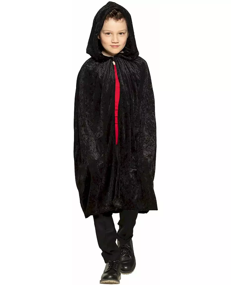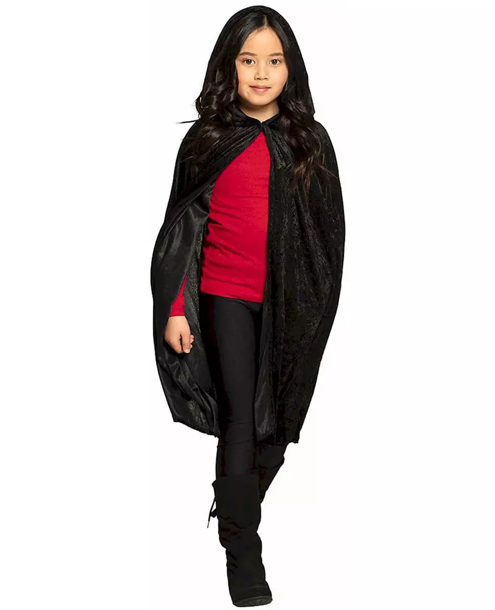 En klassiker for alle mystiske forkledninger Denne svarte fløyelskappen for barn måler omtrent 115 cm lang og gir et elegant og mørkt preg til ethvert kostyme. Det myke stoffet har en fløyelseffekt. Den er utstyrt med en stor hette og lukkes enkelt i halsen, noe som gir god støtte gjennom dagen. Perfekt for å fullføre et vampyr-, tryllekunstner-, trollmanns- eller nattens skapnings-antrekk, denne kappen tilpasser seg mange universer og sikrer et utseende som er både nøkternt og slående til Halloween!. Inkludert tilbehør: 1 kappe Materiale: 100 % polyester
