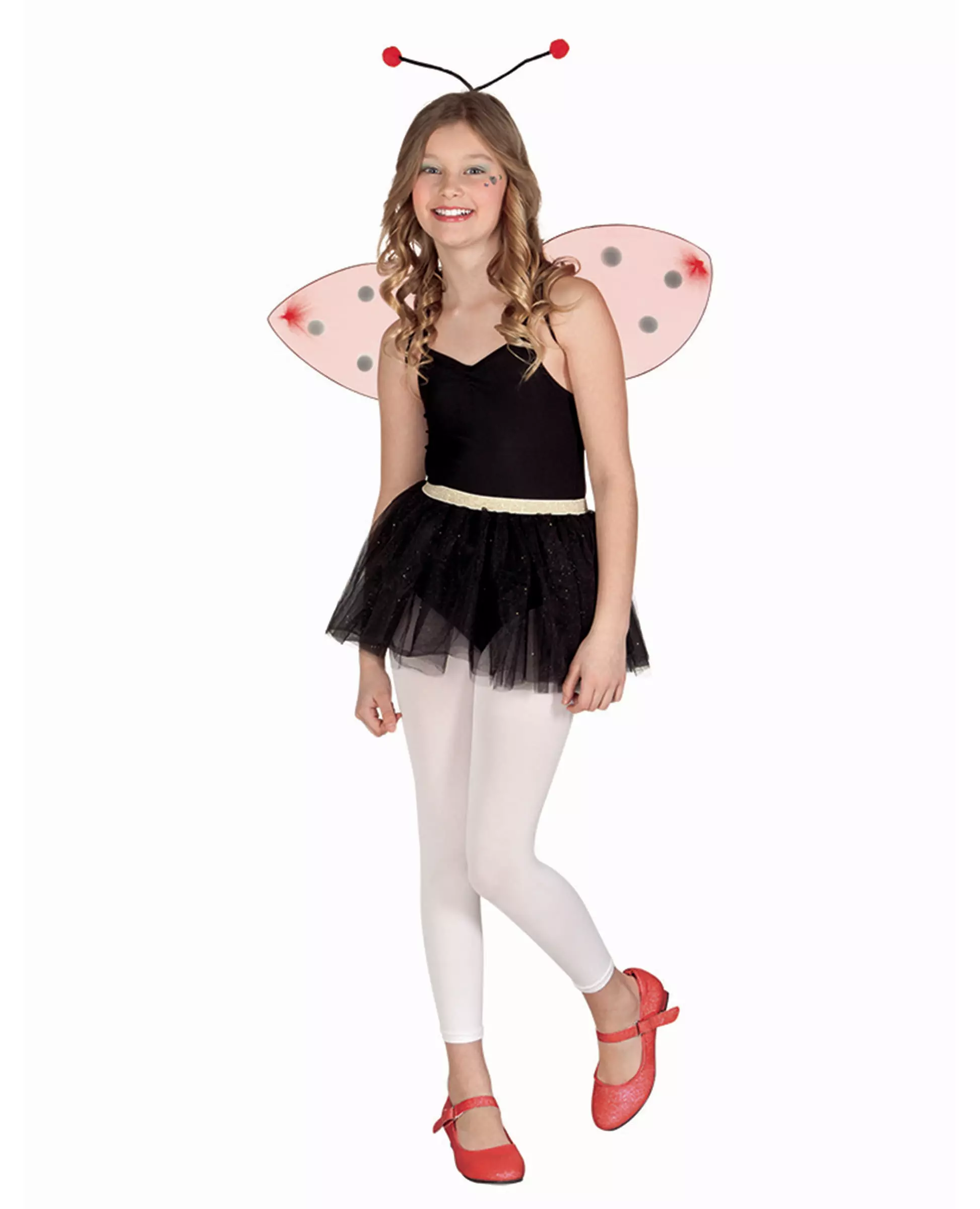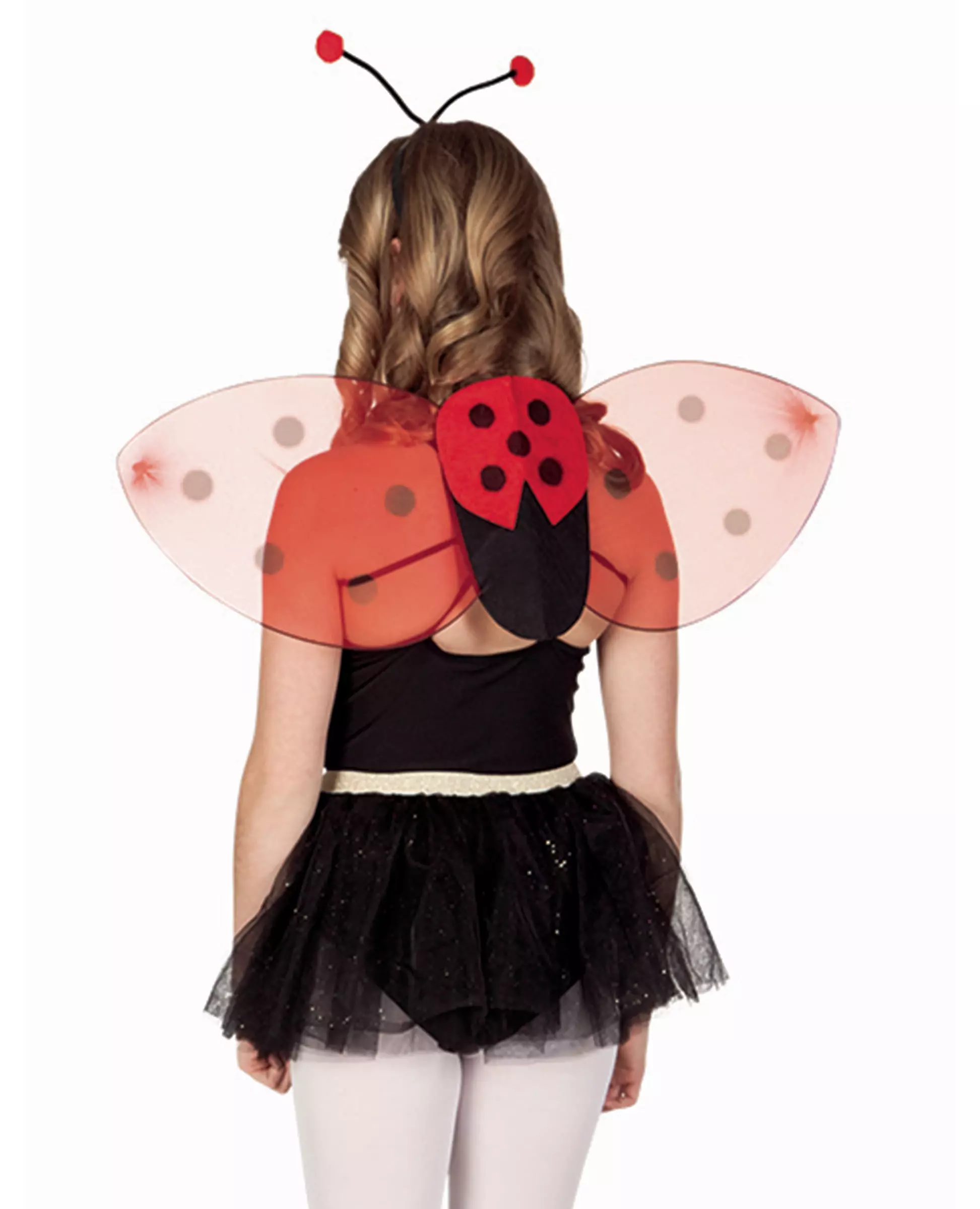Marihøne... Dette marihønesettet er for barn, men passer også for voksne. Det består av et svart pannebånd med fleksible antenner og små svarte pomponger, samt et par røde vinger med svarte prikker som måler omtrent 64 x 23 cm. Elastiske bånd lar deg holde vingene bak ryggen. Dette settet er ideelt for å fullføre kostymet ditt på karneval eller en dyretema-utkledningsfest. Inkludert tilbehør: Pannebånd Par vinger Materiale: 100 % polyesterstoff
