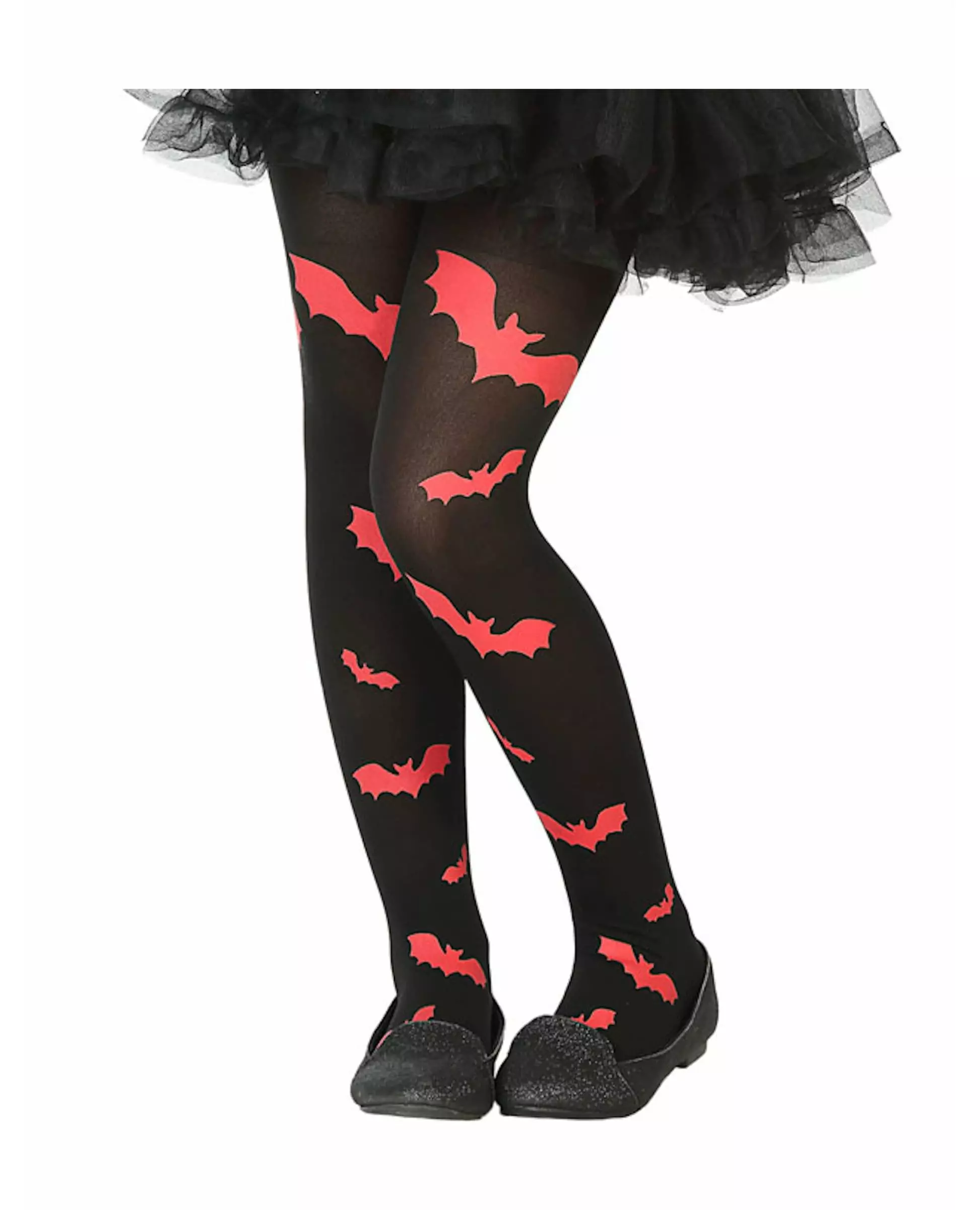 Barnestrømpebukser i svart og rødt med flaggermusmotiv
