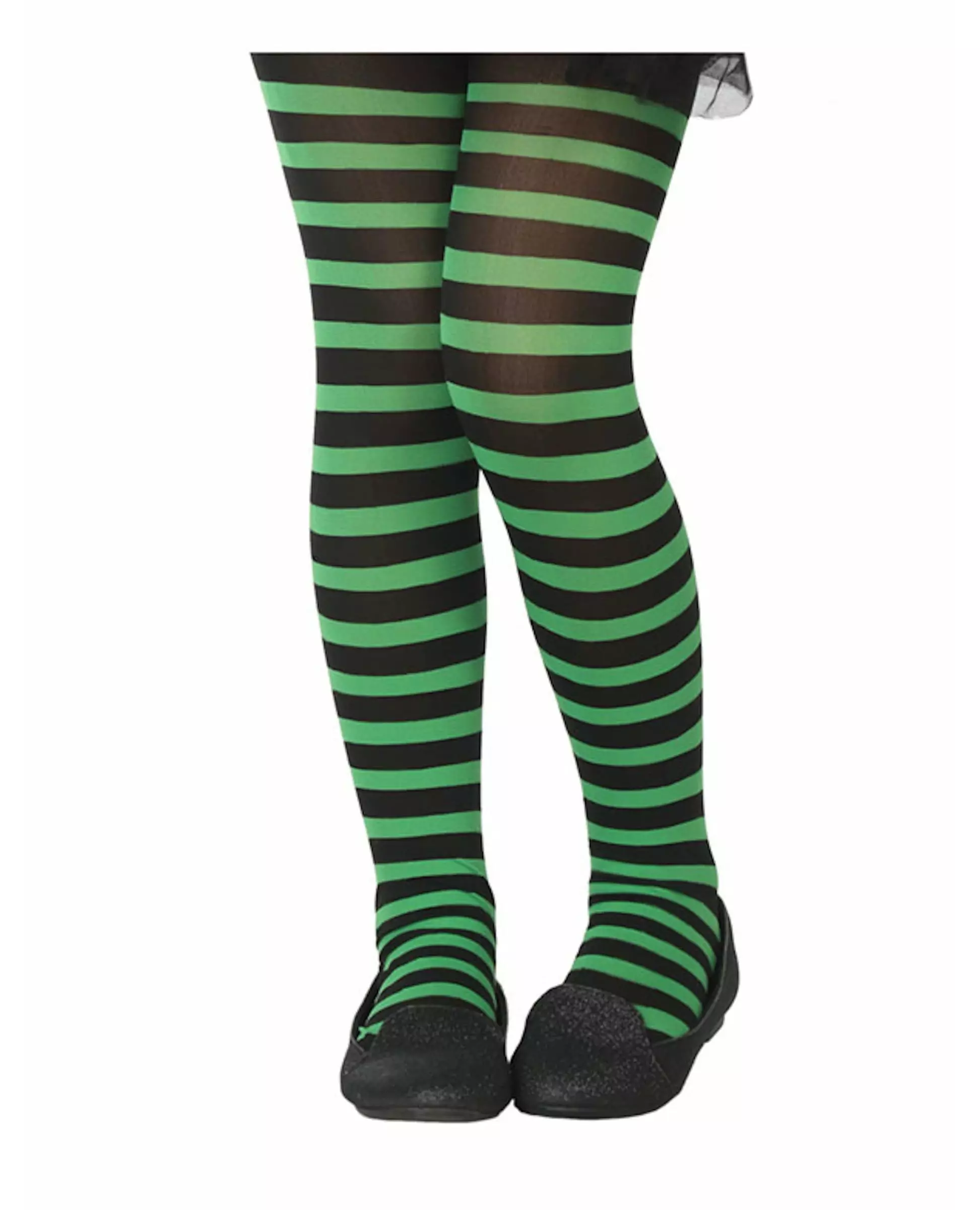 Våg å bruke striper med disse grønne og svartstripete strømpebuksene for barn! Disse barnestrømpebuksene har svarte og grønne striper. De vil være perfekte for en liten jente mellom 6 og 12 år. Disse strømpebuksene vil matche en zombiejentes Halloween-antrekk. Inkludert tilbehør: Strømpebukser