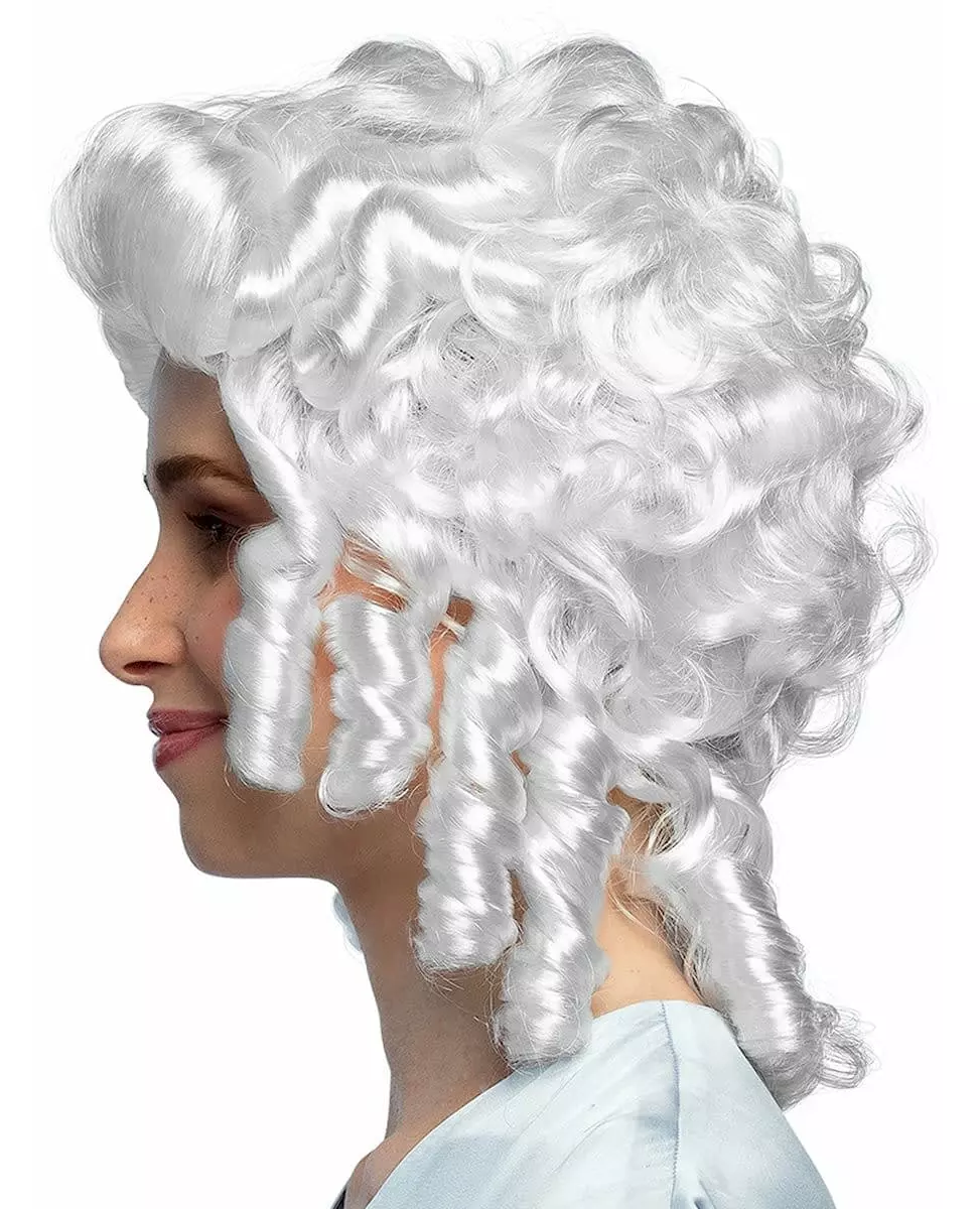 Vintage hvit! Denne barokkparykken for kvinner er hvit i fargen. Den er i barokkstil og har engelske krøller på hver side av ansiktet. Denne parykken vil være perfekt for å fullføre antrekket ditt under kostyme- eller temafester. Inkludert tilbehør: Parykk