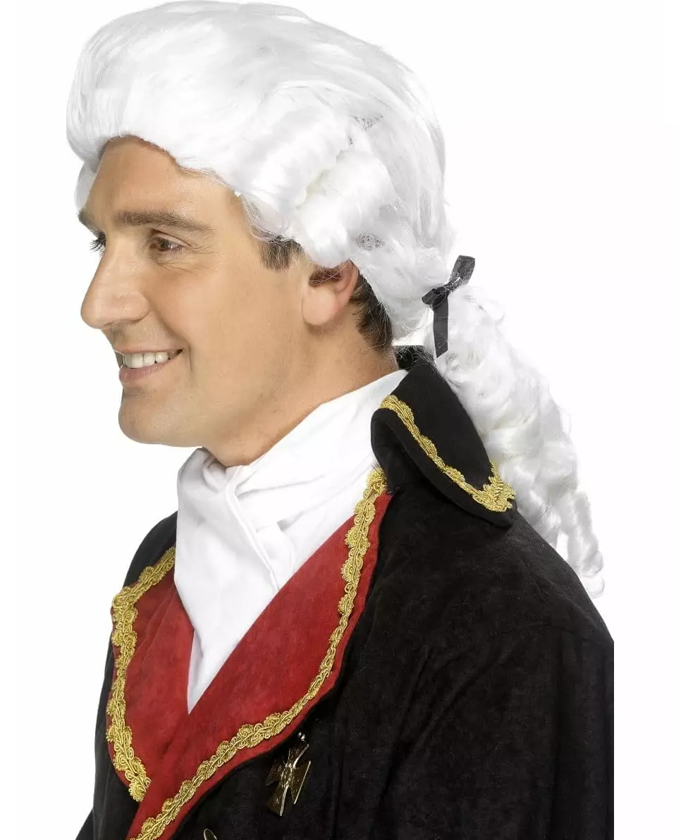 Bli en barokkgreve for en kveld. Denne barokkparykken for voksne er hvit. Pannen er klar og håret er krøllet på sidene. En liten hestehale er plassert bak på parykken. Dette tilbehøret vil være perfekt for å fullføre et baronkostyme under en renessansetema-kveld. Inkludert tilbehør: Parykk. Materiale: Syntetisk.
