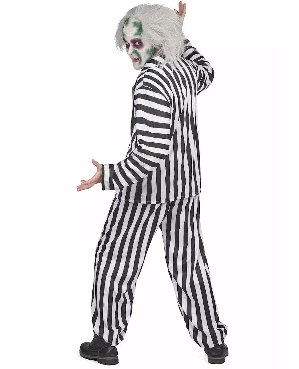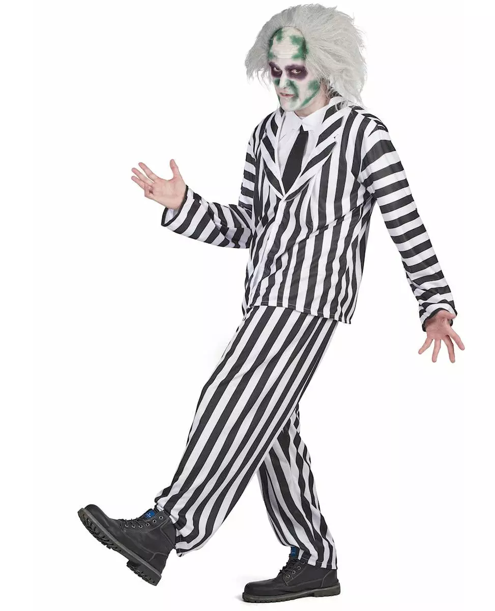 Lett stoff! Dette offisielle Beetlejuice™-kostymet for menn inkluderer en jakke, bukser og en brystbeskytter. Hele kostymet er stripete i svart og hvitt. En brystbeskytter med falskt slips bæres under jakken. Dette kostymet vil være perfekt for å gjøre deg til den skumleste personen på kostymefester eller til Halloween. Inkludert tilbehør: Jakke Brystbeskytter Bukser Materiale: 100 % polyester Vedlikehold: Håndvask
