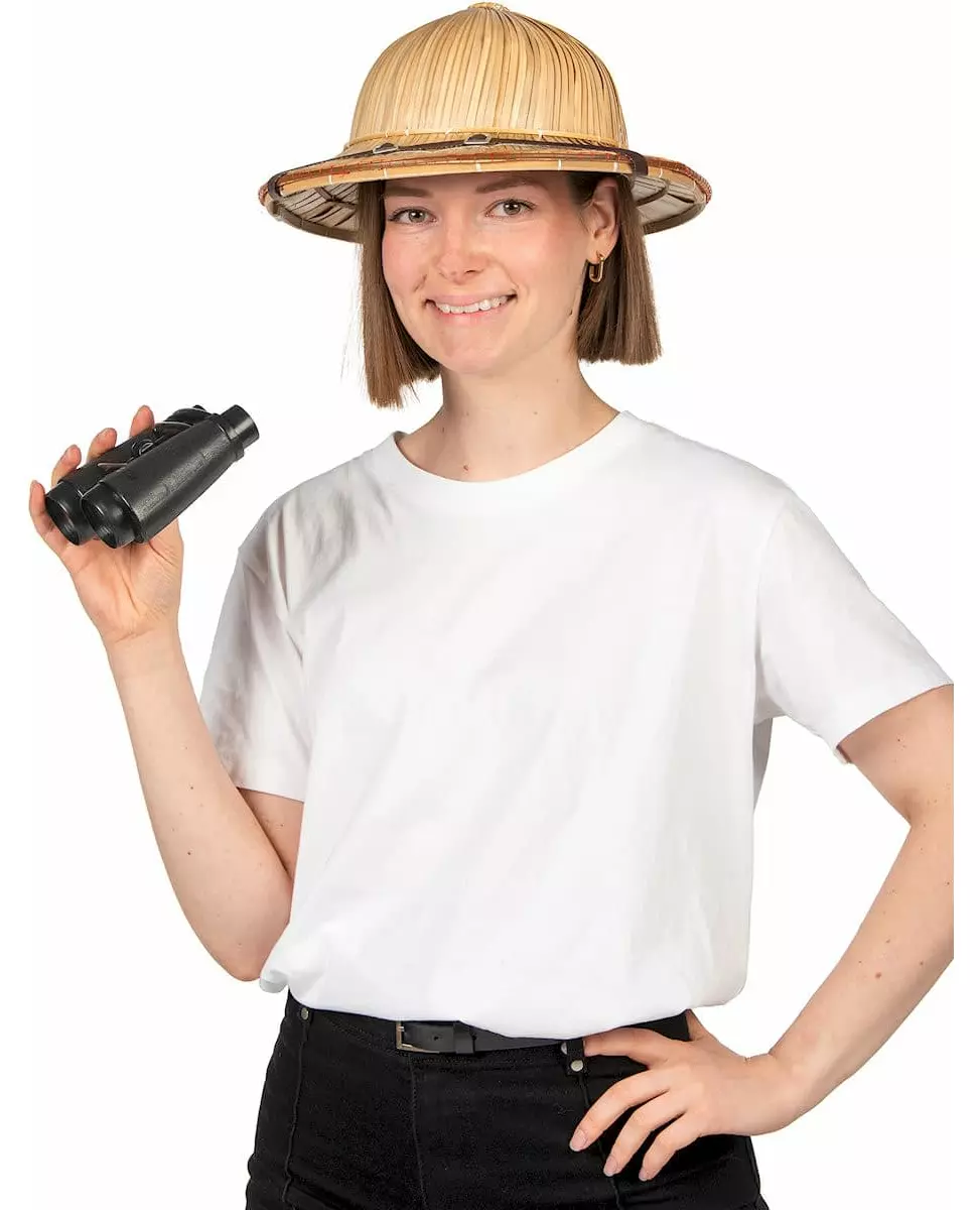 La oss dra på eventyr! Denne eventyrerhatten i kolonistil er laget av vevd strå. Den har en brun stropp med to firkantede spenner på toppen. Hatten har en hodeomkrets på omtrent 55,5 cm. Denne eventyrerhatten vil være perfekt for å pynte opp kostymene dine og legge ut på utflukter i jungel-, koloni-, safari- eller oppdagelsesfester! Inkludert tilbehør: hatt