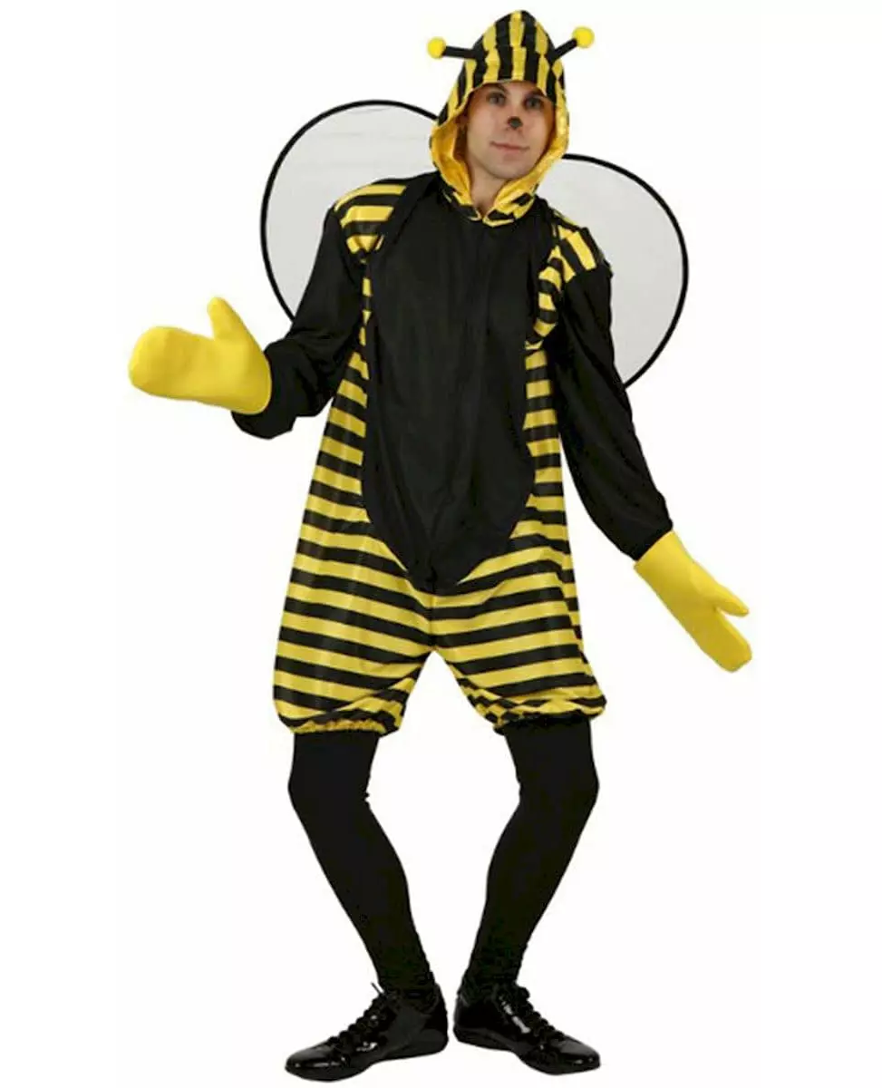 Komplett antrekk! Dette biekostymet for menn består av en jumpsuit med lue, hansker og et par vinger. Det er en glidelås foran slik at du enkelt kan ta på deg jumpsuiten (strømpebukser og sko er ikke inkludert). Dette kostymet er perfekt for å legemliggjøre en ekte bie under kostymefester eller til og med på karnevalet. Inkludert tilbehør: Jumpsuit, hansker, par vinger. Materiale: 100 % polyester. Vedlikehold: Håndvask.