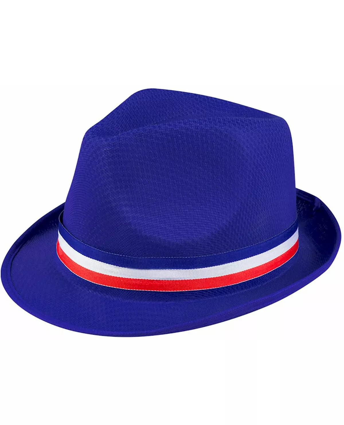 Støtt de blå med denne supporterluen! Denne gangster-Frankrike-supporterluen for voksne er mørkeblå. En bred trefarget blå, hvit og rød flette er limt til bunnen av luen. Denne luen har en hodeomkrets på omtrent 58 cm. Den vil være perfekt for å fullføre supporterantrekket ditt for et sportsarrangement som EM eller VM. Inkludert tilbehør: Lue Materiale: 100 % polyester