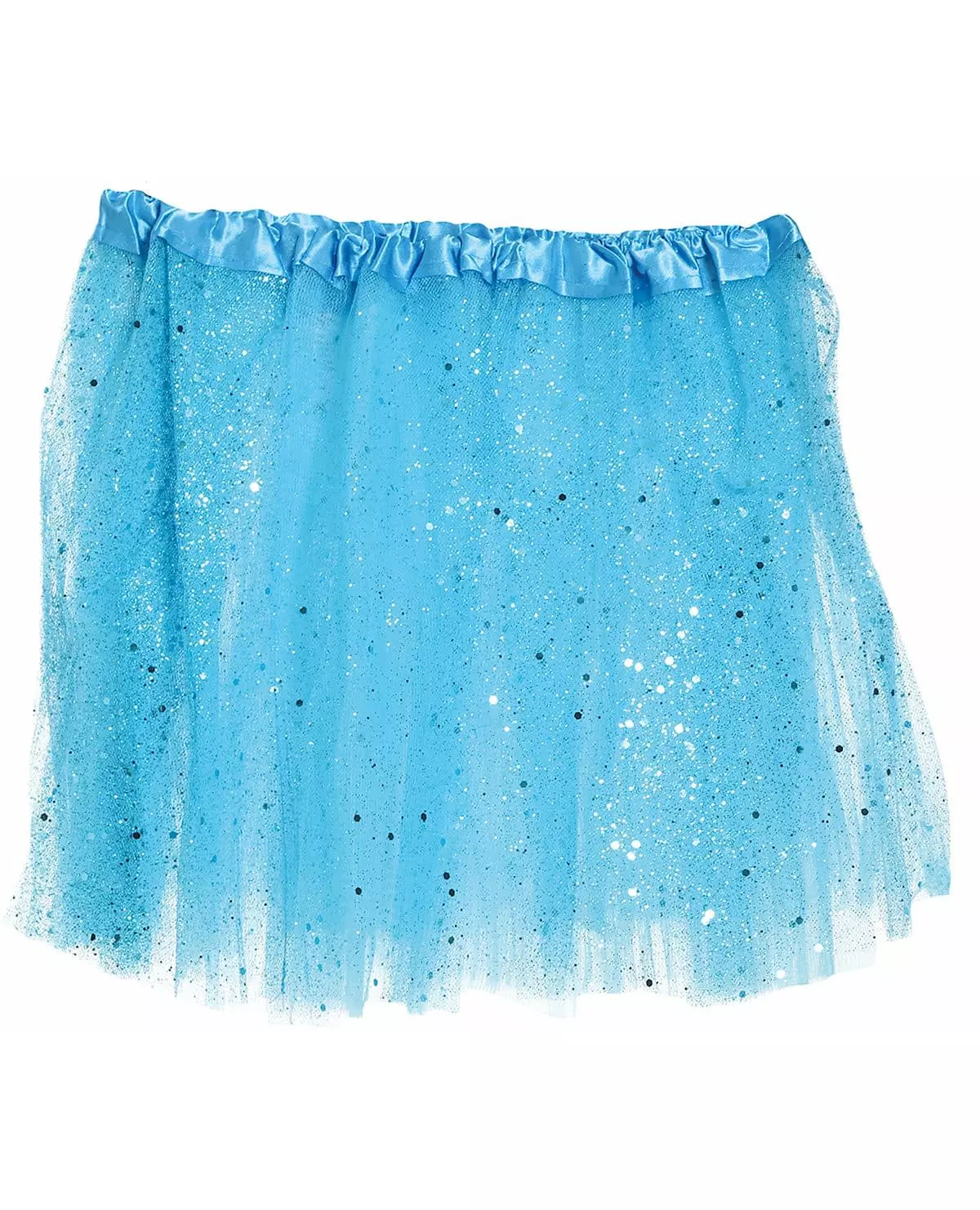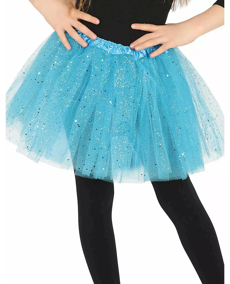 Isblå! Denne tutuen for jenter er laget av blå tyllpaneler med paljetter som får den til å glitre som om snøflak var plassert på den. Midjen er elastisk. Den vil være perfekt for å fullføre et isdronning- eller vinterfekostyme til karneval... Inkludert tilbehør: Tutu Materiale: 100 % polyester 100 % polyester