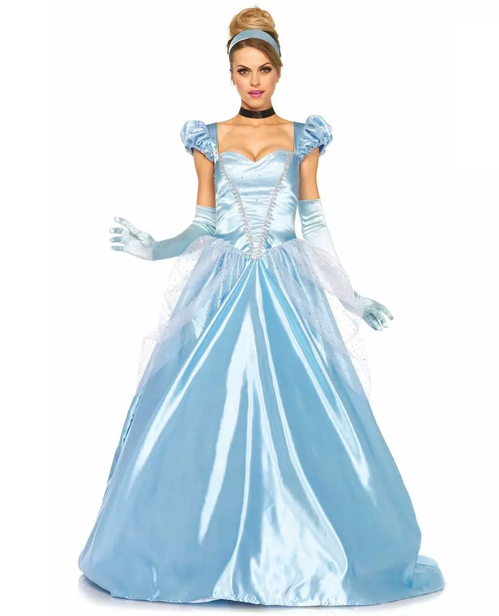 Bli den vakreste når du skal danse! Dette prinsessekostymet er for kvinner. Det består av en lang lyseblå ballkjole laget av sateng og paljettyll. Ermene er korte og elastiske for mer komfort. Denne kjolen kommer også med et lyseblått pannebånd som matcher kjolen og et svart satengkjede. Bli den vakreste når du skal danse, men vær forsiktig med midnattsslagene. Inkludert tilbehør: Kjole Halskjede Pannebånd Materiale: 100 % polyester Stell: Håndvask