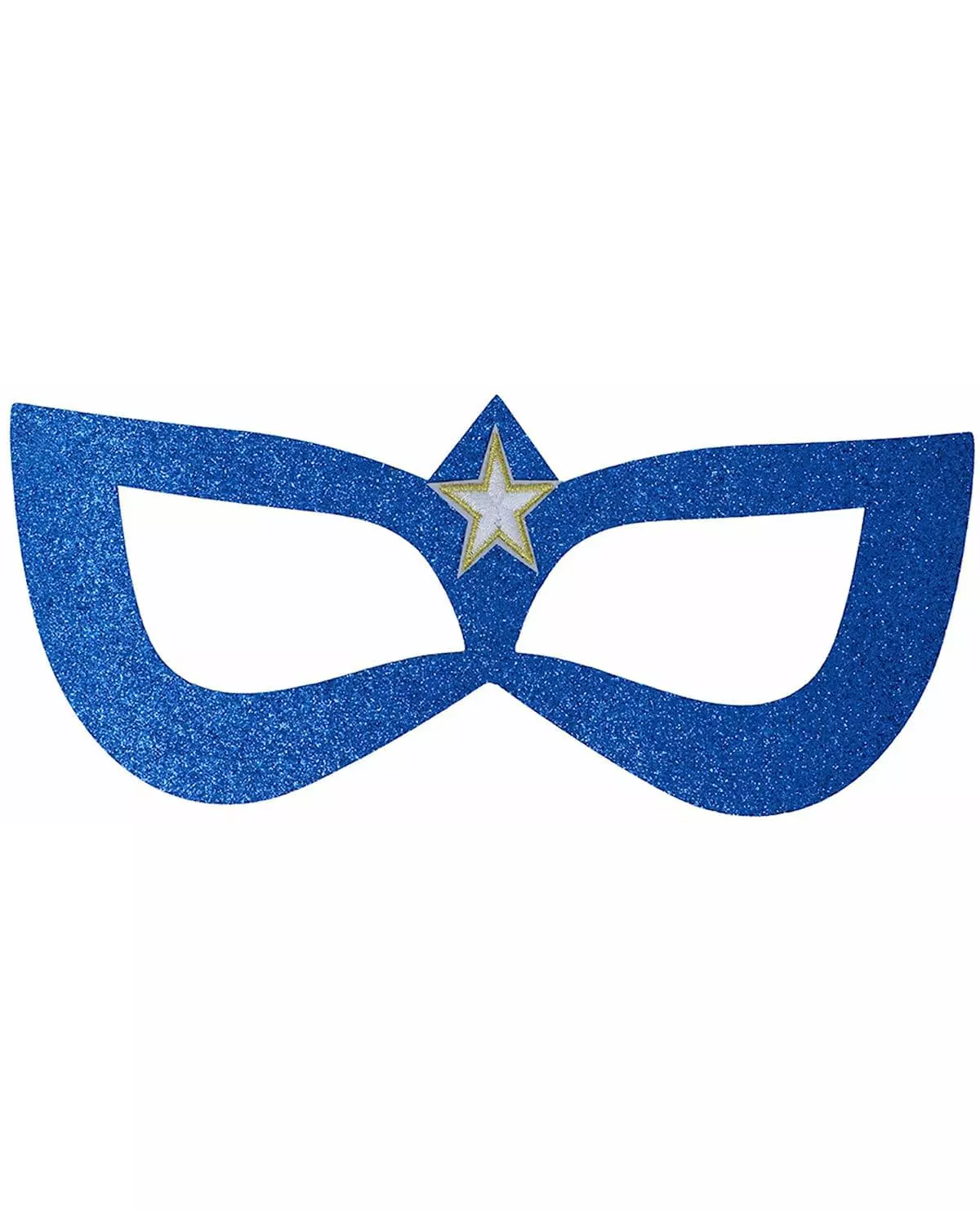 Superheltmasken din Denne superheltmasken er for kvinner. Den er blå i fargen og er dekket av skinnende paljetter med en vakker gyllen stjerne mellom øynene. To store åpninger i øyehøyde lar deg se godt. Denne masken vil være perfekt for å fullføre et heltinnekostyme til en kostymefest eller til karneval! Inkludert tilbehør: En maske Stell: Håndvask