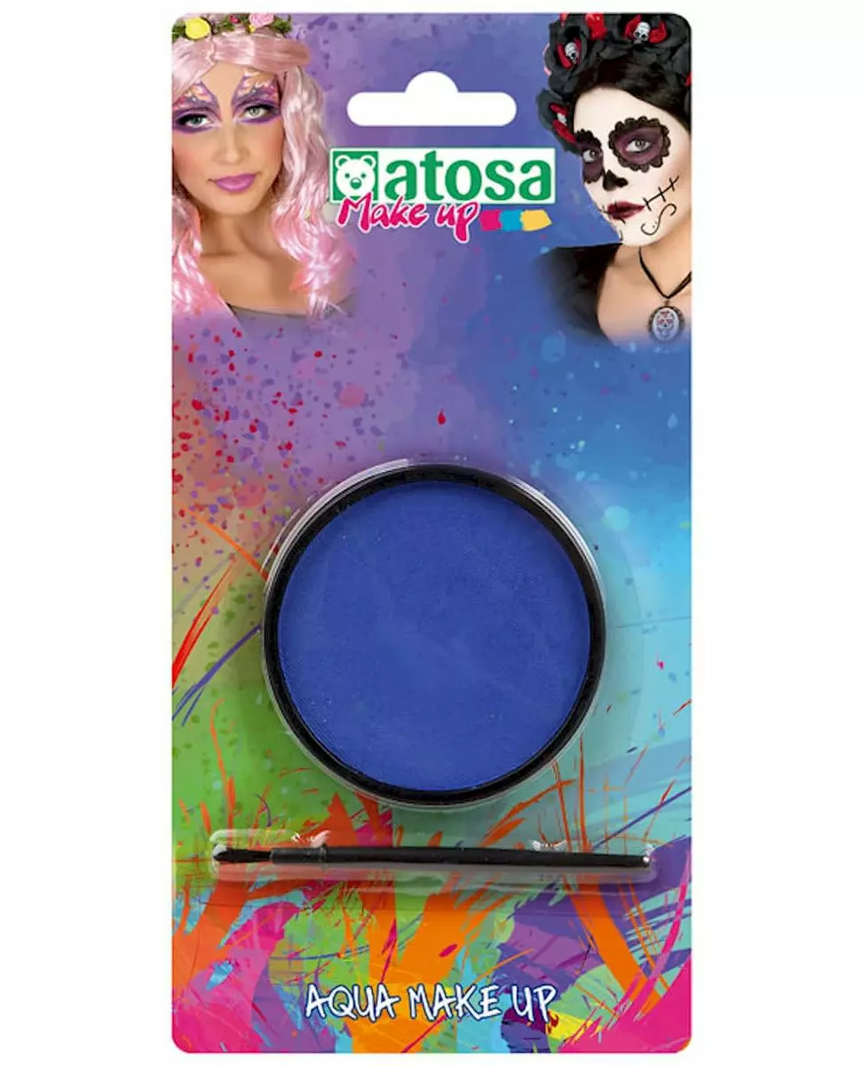 Ta på deg blå sminke! Den blå sminkeboksen inneholder 12 gram. Du kan påføre den i ansiktet eller på kroppen. Den kan enkelt fjernes med såpe og vann. Den vil være perfekt til karnevalssminke eller for å forvandle deg til en smurf. Ingredienser: -. Inkludert tilbehør: 1 sminkeboks