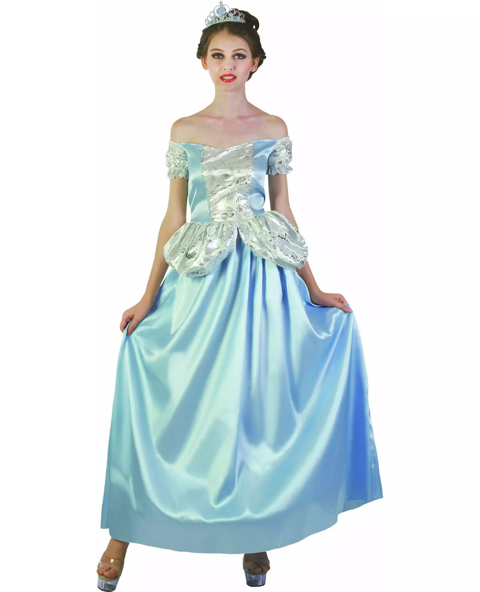 Du blir ballets dronning i dette prinsessekostymet. Dette blå prinsessekostymet for kvinner består av en kjole (sko ikke inkludert). Den lange kjolen er himmelblå. Den er dekorert med satengstoff med blomstermønstre på ermene, bysten og midjen. Sølvpaljetter gir bysten glans. For ekstra komfort er ermene og midjen elastiske. Diademet er sølv med blå imiterte perler. Laget av plast, vil det pryde enhver frisyre perfekt. Et hvitt underskjørt med bøyle er også inkludert. Det gir kjolen form og volum. Dette kostymet vil være perfekt for å legemliggjøre en fantastisk eventyrprinsesse, til en utkledningsfest med venner eller til karneval. Inkludert tilbehør: Diademkjole Materiale: 100 % polyester Vedlikehold: Håndvask