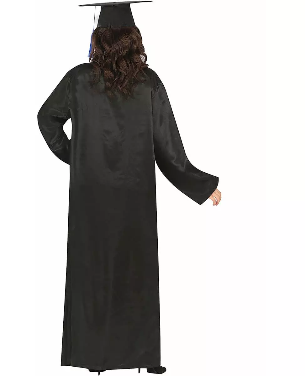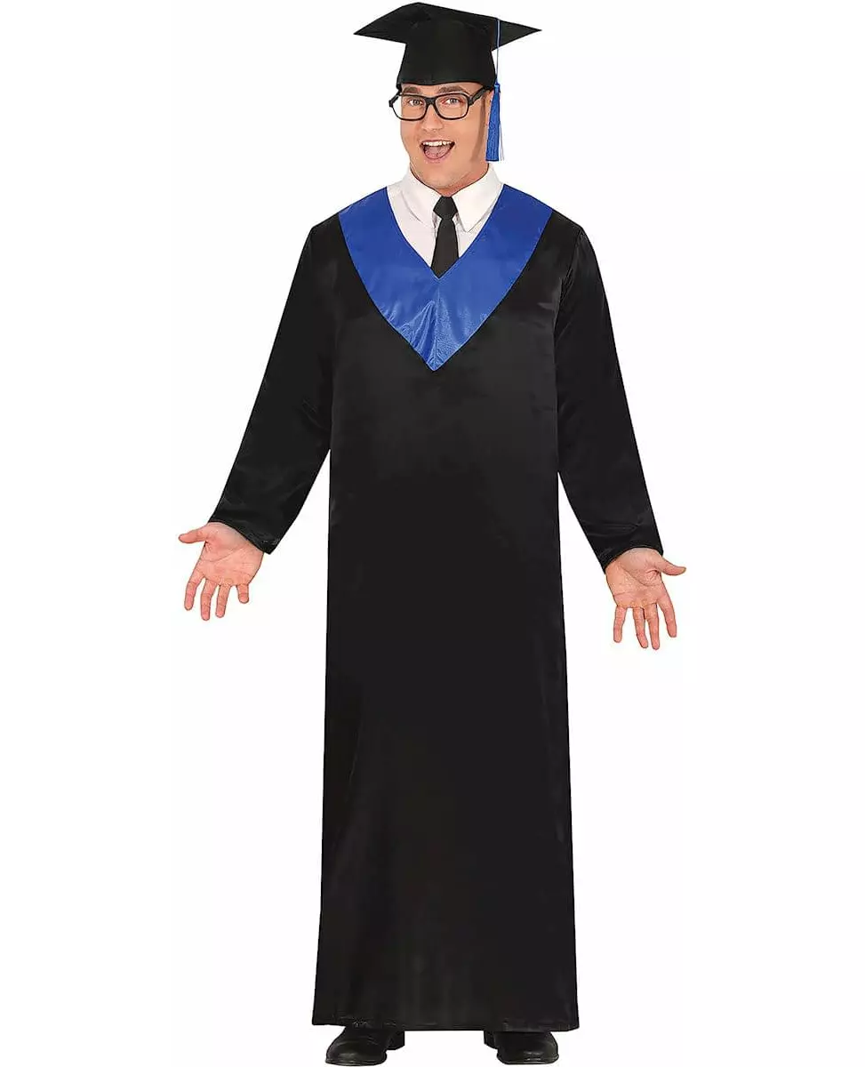 Klar for konfirmasjon! Dette blå og svarte konfirmasjonskostymet for voksne består av en lang tunika og en matchende seremoniell hatt. Den svarte tunikaen, med lange ermer, har en blå sateng V-formet krage som minner om antrekkene som brukes på konfirmasjonsseremonier. Den firkantede hatten, med sin blå pompong, fullfører antrekket perfekt. Ideelt for en temafest eller et show! Materiale: Tekstil. Inkludert tilbehør: 1 hatt 1 tunika
