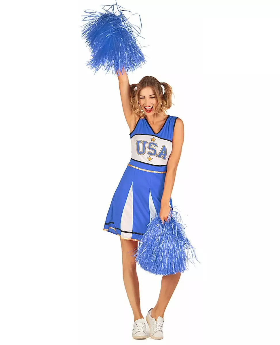 Et cheerleader-kostyme! Dette cheerleader-kostymet er for kvinner. Det består av en kjole. Denne cheerleader-kjolen er dekorert med inskripsjonen «USA» på brystet. Den representerer perfekt de typiske kjolene til cheerleaders i USA. Den vil være perfekt for å legemliggjøre en ekte cheerleader på en kostymefest!. Inkludert tilbehør: Kjole Materiale: Polyester Stell: Håndvask