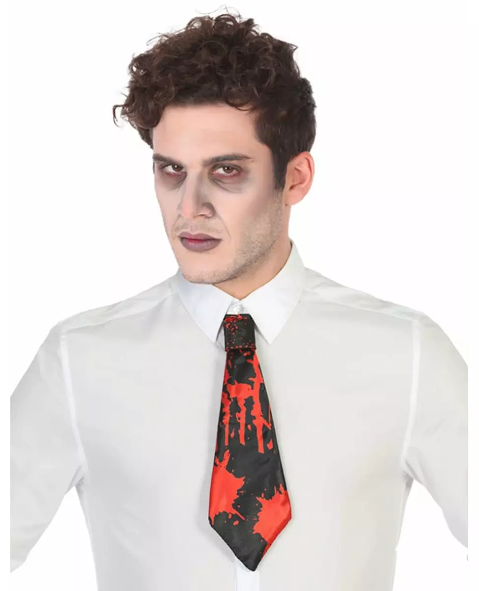 Gi vampyrantrekket ditt et blodig preg. Dette slipset for voksne er laget av svart satengstoff. Det er dekket med store, knallrøde blodflekker. Det måler omtrent 31 cm i lengden og bæres rundt halsen med en strikk. Dette blodige slipset vil være perfekt for å fullføre zombiekostymet ditt til Halloween. Inkludert tilbehør: Slips, Materiale: 100 % polyester,