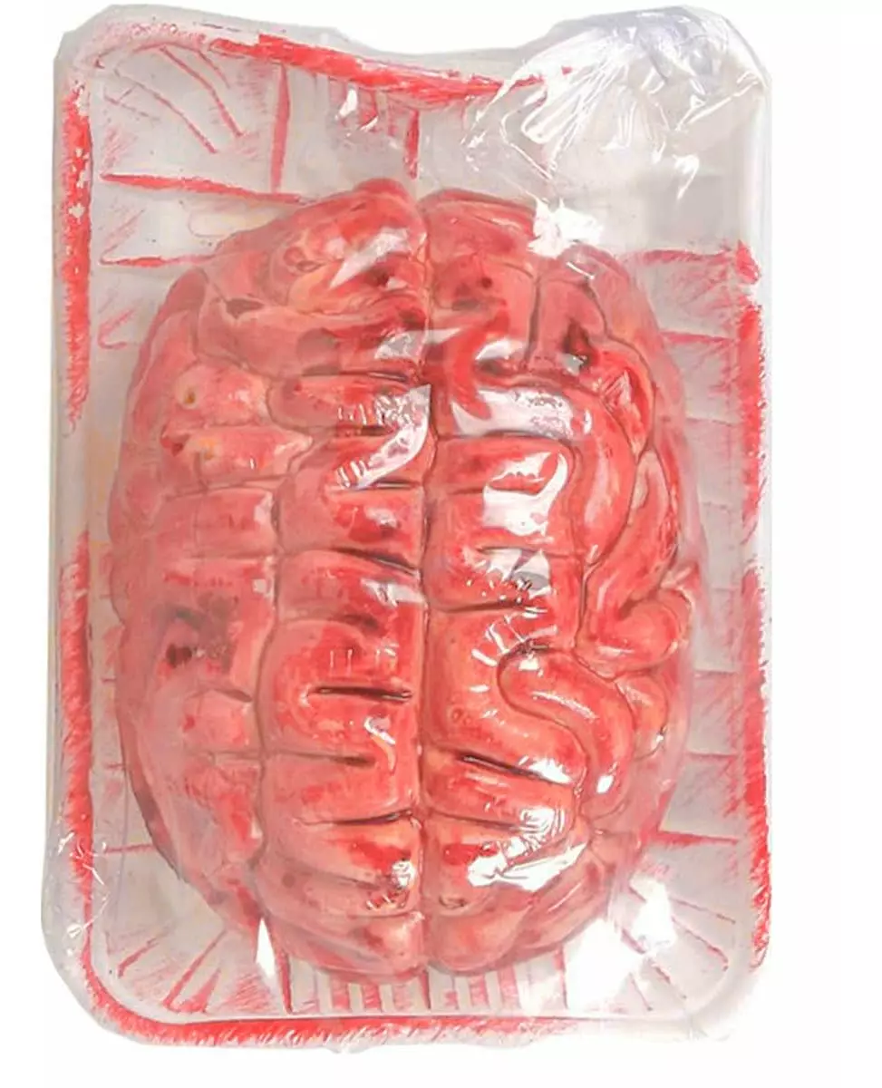 Vel bekomme! Denne dekorasjonen består av et brett og en hjerne. Brettet er laget av plast med spor av blod. Plasthjernen måler omtrent 15 cm lang og 6 cm høy. Denne blodige hjernen vil være perfekt for å gjøre et innslag på bordet ditt til Halloween. Inkludert tilbehør: 1 brett 1 hjerne Materiale: Plast