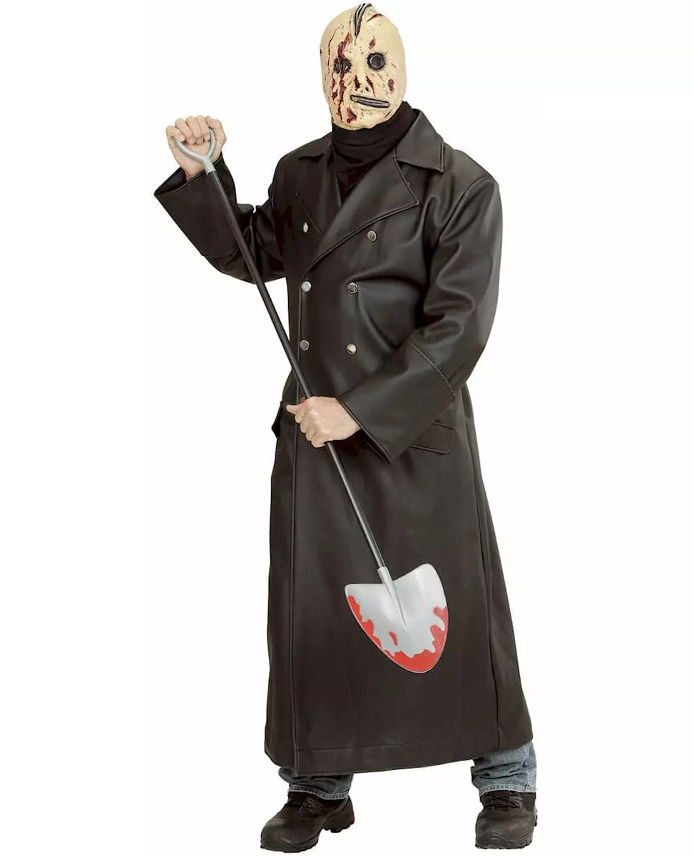 Bli en gal graver med denne blodige spaden ... Denne blodige plastspaden på 122 cm er et tilbehør til kostymefester. Spadens base er grå, i likhet med hodet, som også har blodflekker. Håndtaket er svart. Skaff deg denne spaden for å fullføre det gale graverantrekket ditt! Inkludert tilbehør: Spade Materiale: PVC