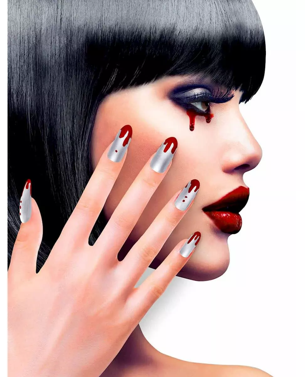 Blodige sølvfargede kunstnegler til kvinner Halloween