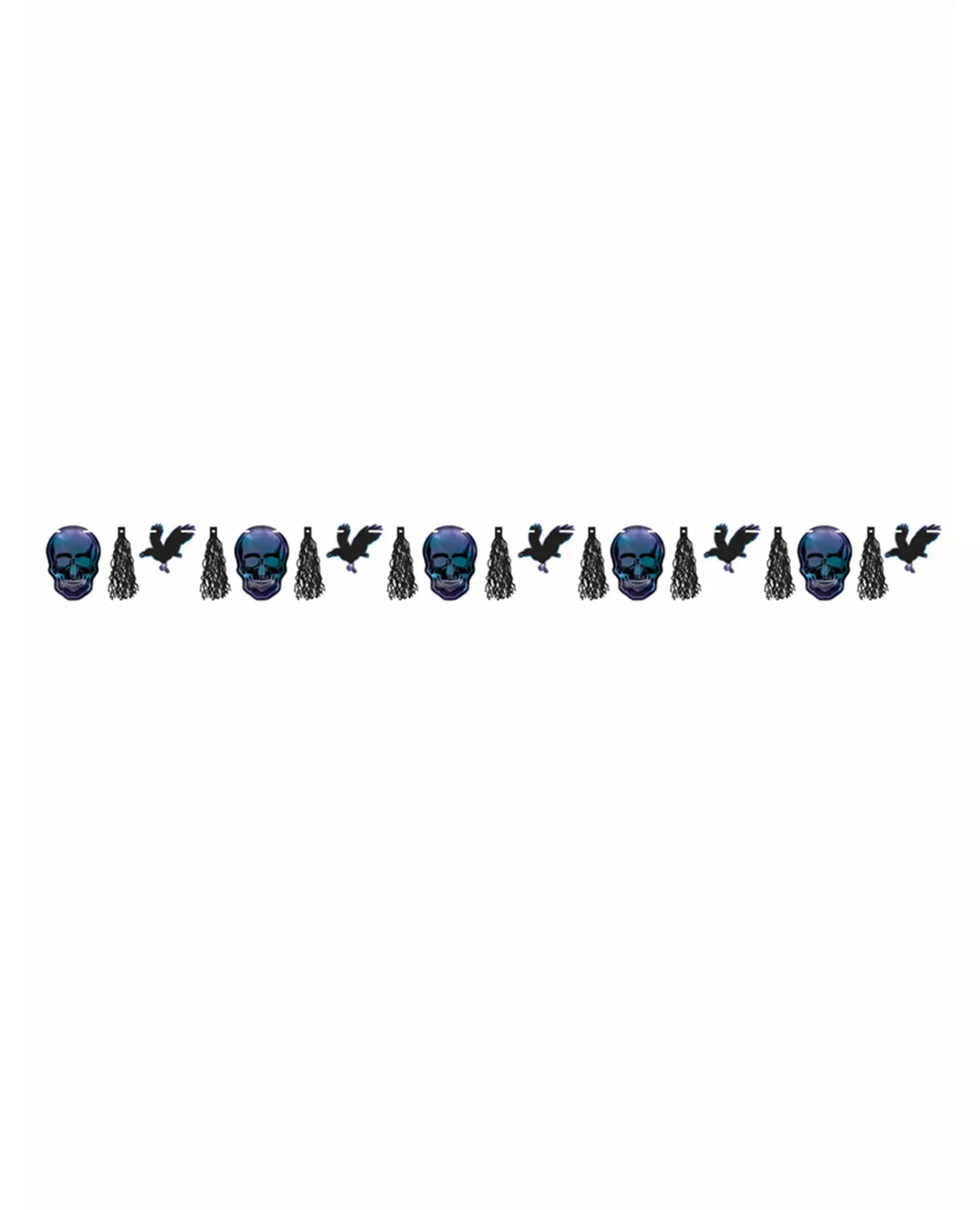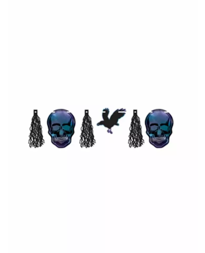 En original dekorasjon til Halloween! Denne Boneshine Fever-girlanderen måler omtrent 3 meter. Den har en hvit tråd dekorert med kråker og svarte dusker, samt blå hodeskaller med lilla detaljer. Denne Boneshine Fever-duskgirlanderen vil være perfekt til Halloween-dekorasjonen din! Materiale: nei. Inkludert tilbehør: 1 girlander