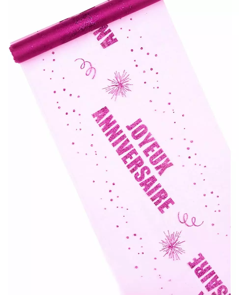 Bordløper i organza, fuchsia, 29 cm x 5 m, Happy Birthday